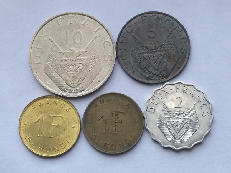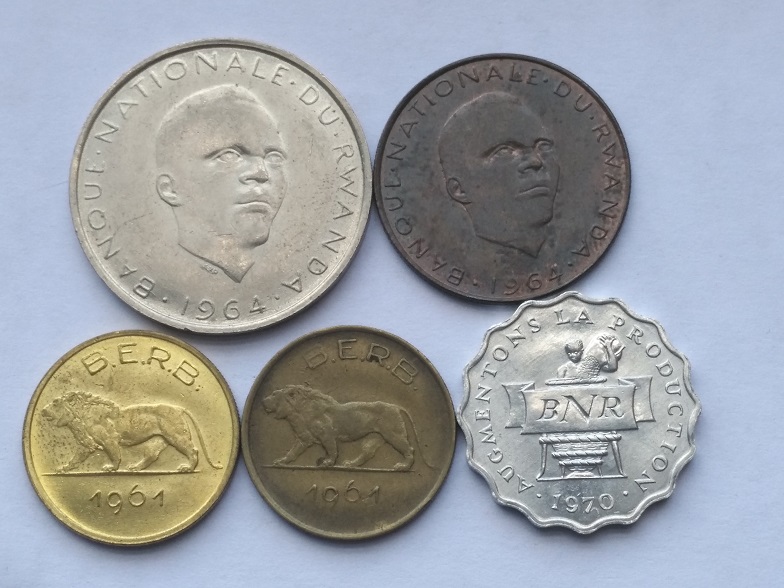 1964年卢旺达5法郎10法郎各1枚;1961年卢旺达-布隆迪1法郎2枚;