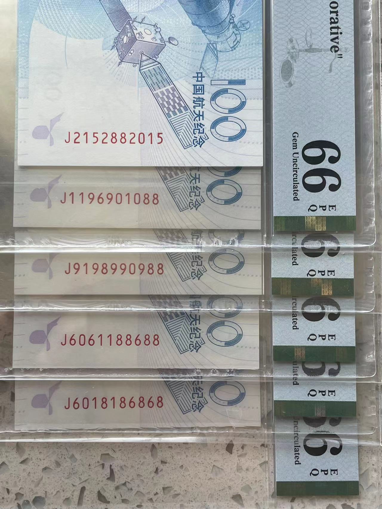航天钞J6061188688,PMG66,
