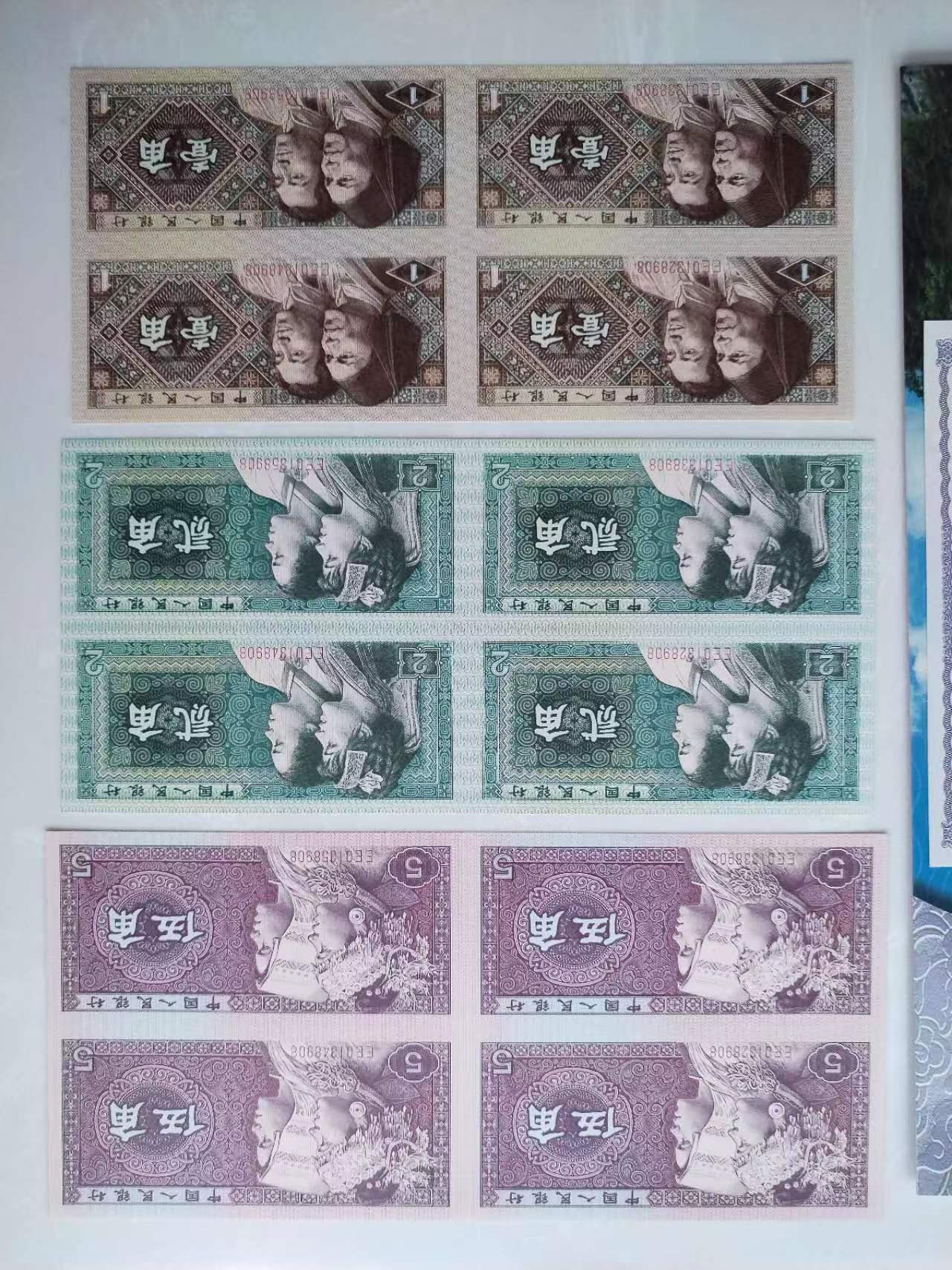 再降价:以上角币四连体钞3本(肉眼全品.3本都不带4.其中一本尾8无4.7.具体图如上)3本一起共售:3700元.