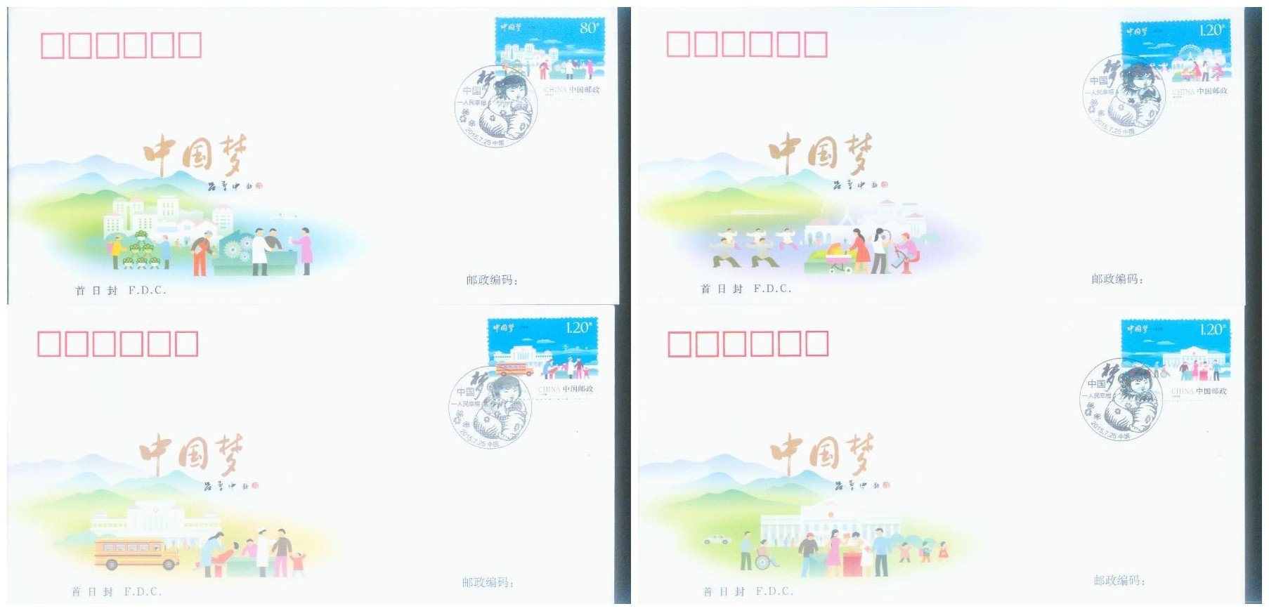34贴,2015-15中国梦二首日封 一套四枚2元*100套