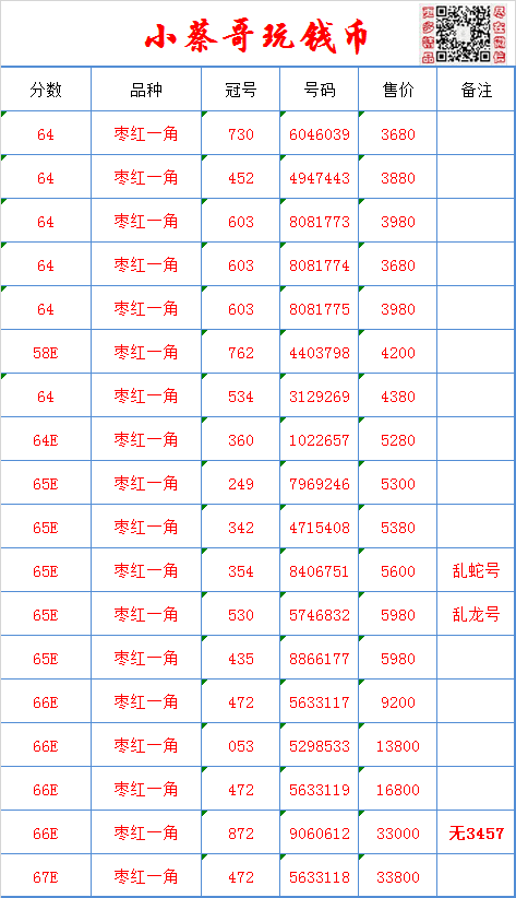 备注:本店主营PMG评级纸币,另外长期高价回收各种版别的PMG评级币。重点回收二版币:黑一元,红一元,宝塔山,黄五元,海鸥五元,红五元,绿三元,大黑拾等,三版:五星车工,古币车工,背绿,枣红,背水等,四版币,不限数量!不限分数!只要您有货,咱们都可以谈,1张不嫌少,1000张不嫌多。