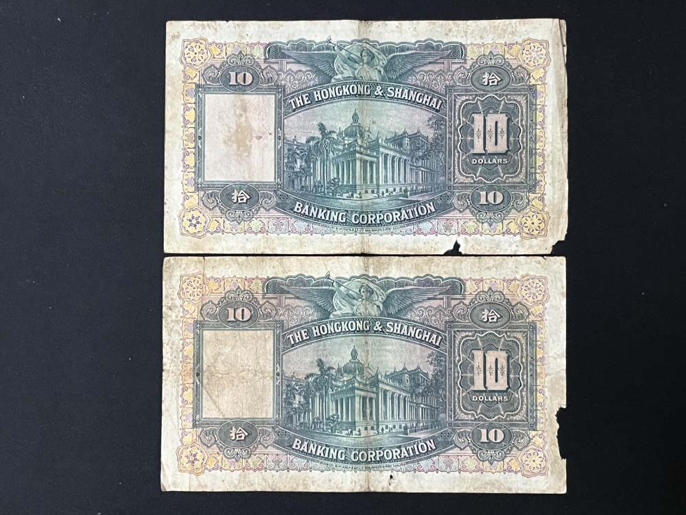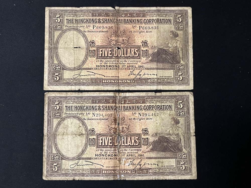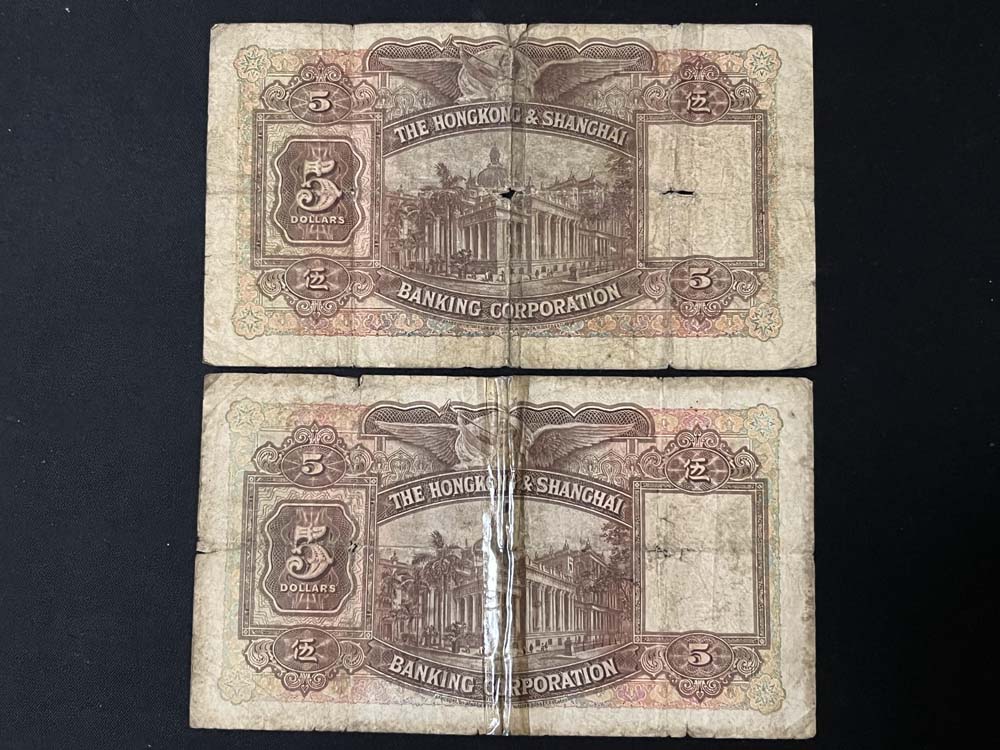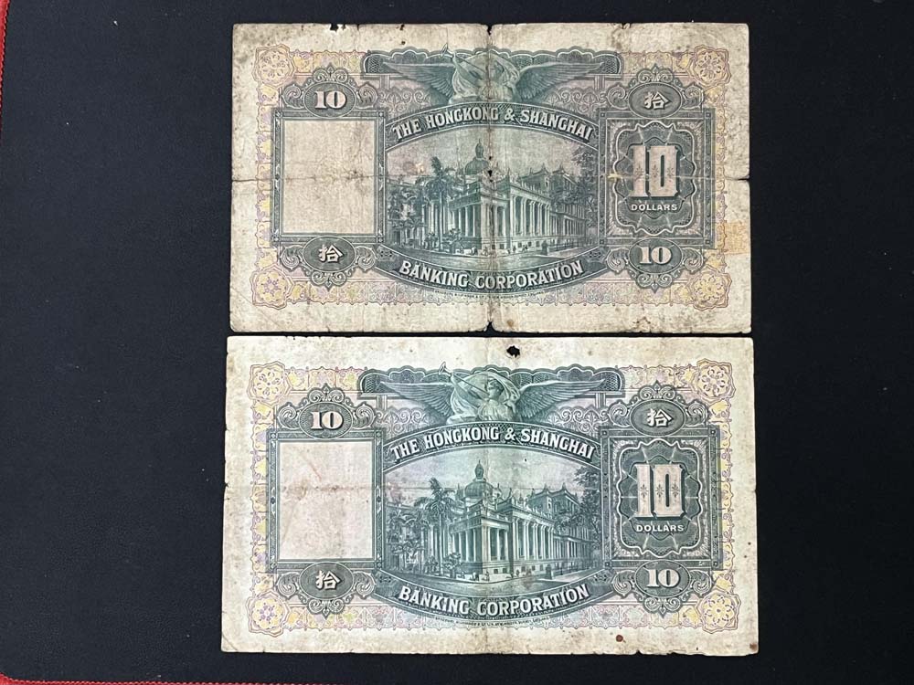 出售香港汇丰银行1941年.1946年.1948年10元.5元纸币.品像如图.1941年5元(2张).10元(2张).1946年10元(2张).1948年(2张).共8张X80元=640元包快递.以电话确认为准.款到发货.