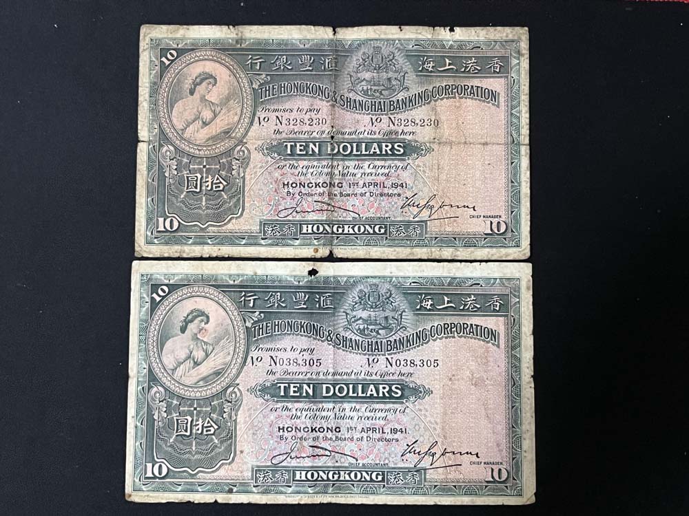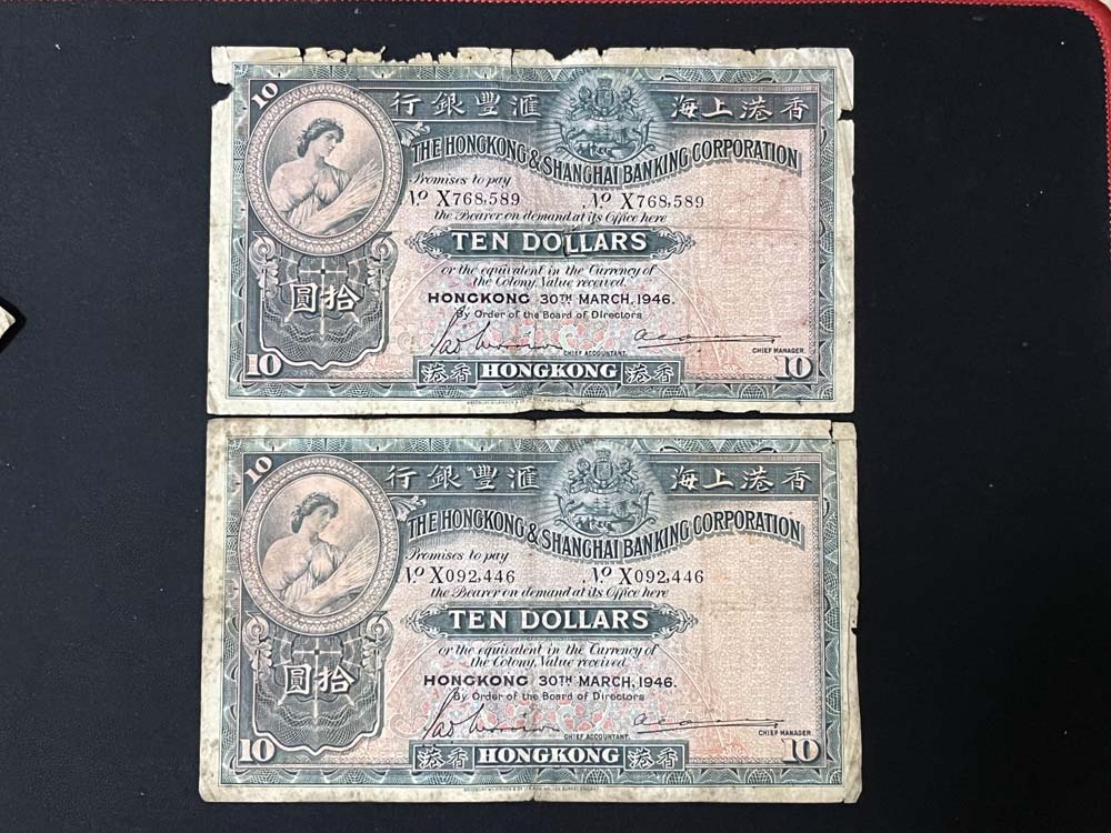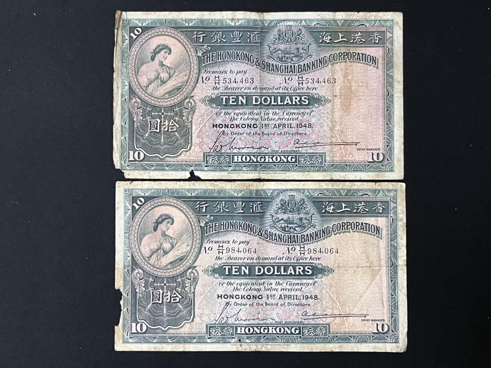 → 出售香港汇丰银行1941年.1946年.1948年10元.5元纸币