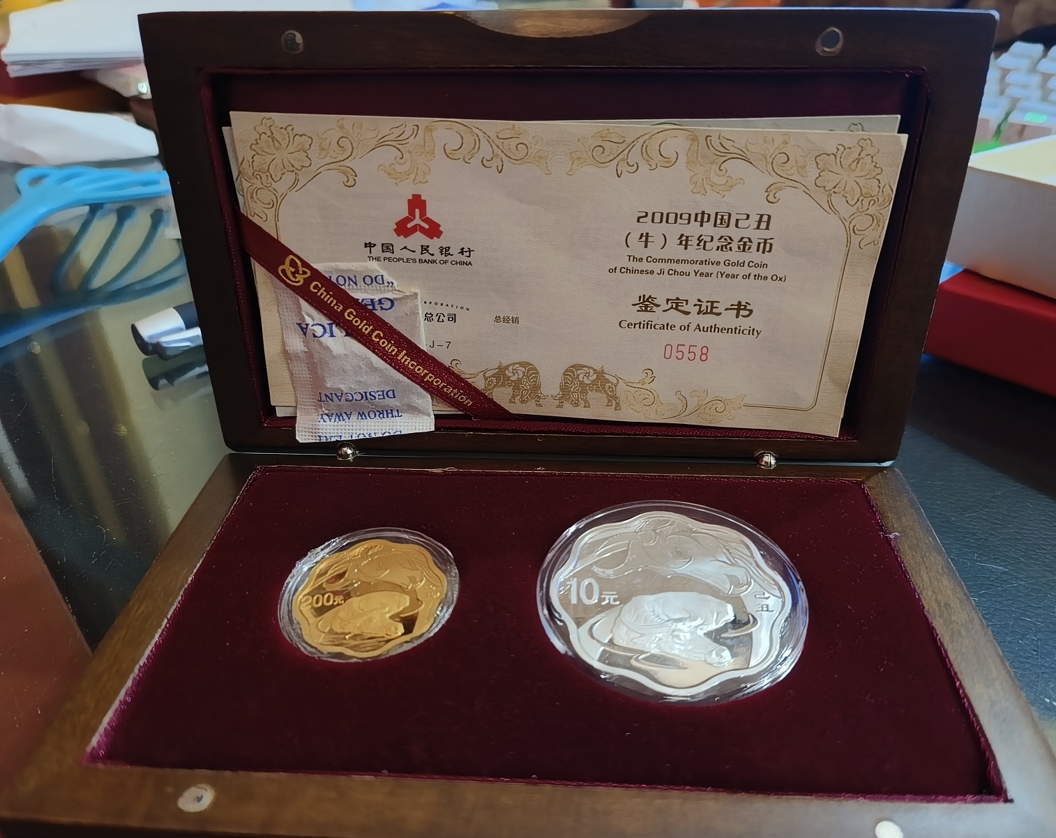 8500元出2009年梅花金银纪念币,证书0558。