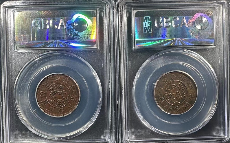 2枚西藏铜币 新雪康 一钱,公博53分《0792一5224》