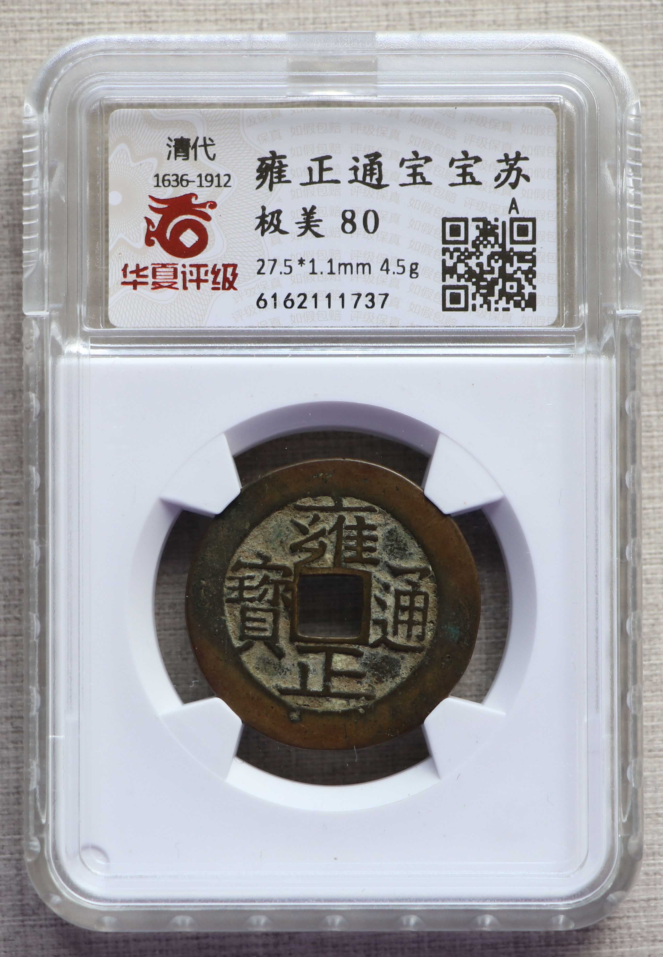 极美80雍正通宝宝苏华夏评级、盒子完好(评级盒类型:开放式评级盒)。 650元
