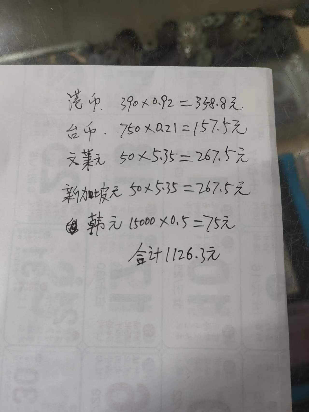 出点港币.加其它外币看图共计合人民币1120元