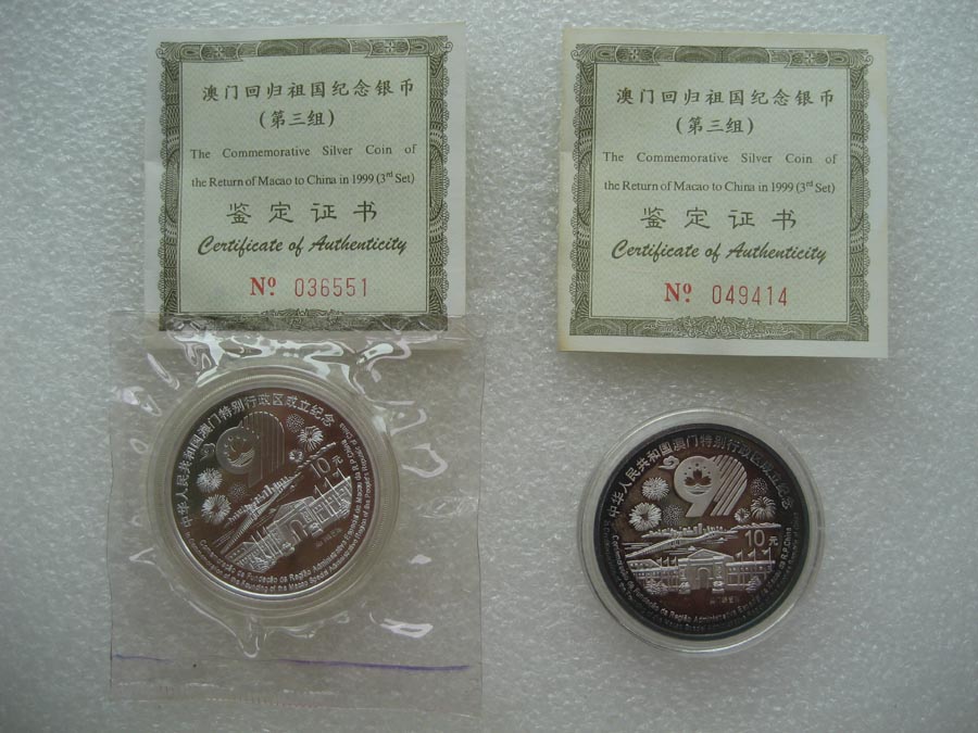 1999年澳门回归银币(第三组)两套