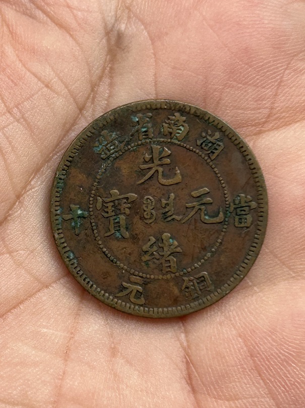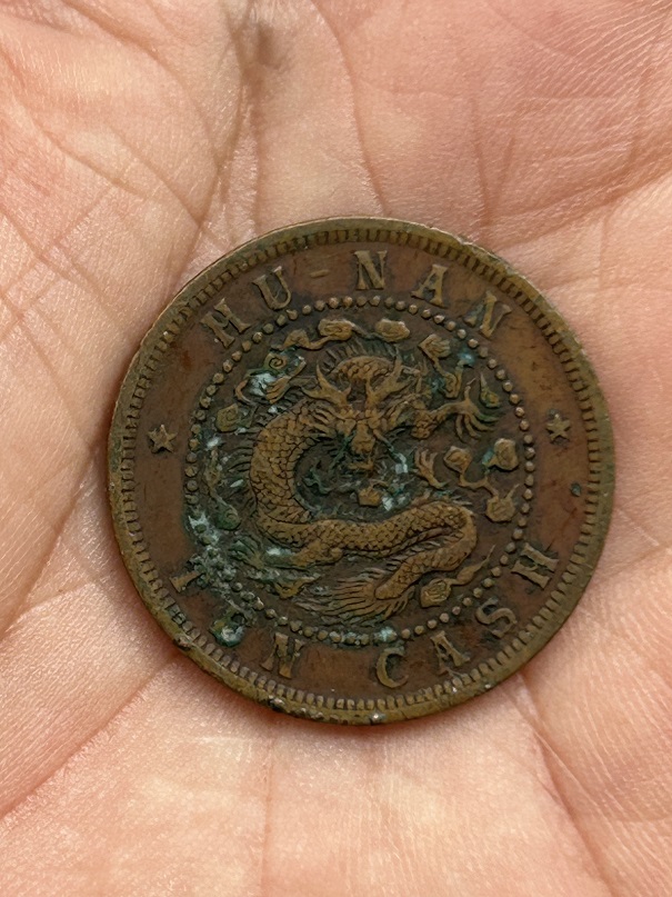→ 出售一个稀少巧克力包浆湖南五角星龙铜币