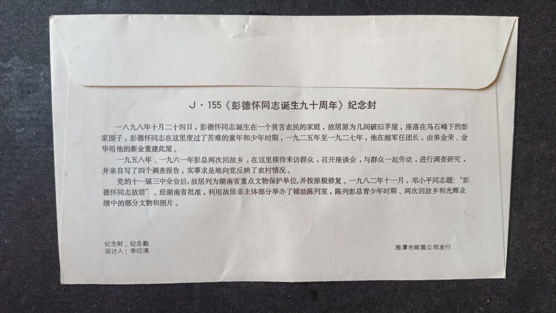 1988年彭德怀诞辰九十周年原地首日实寄封,