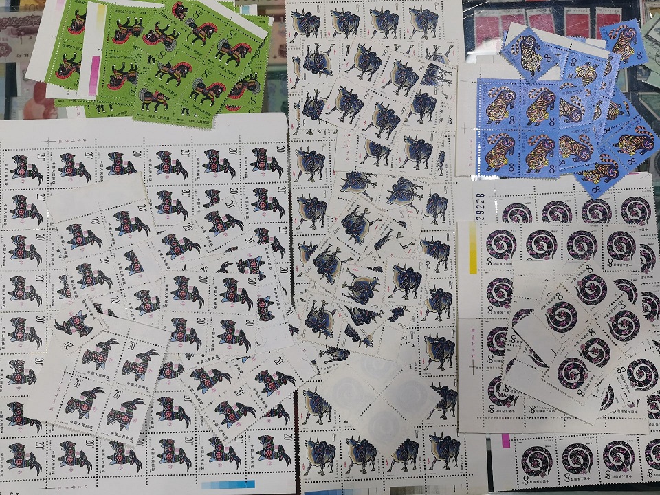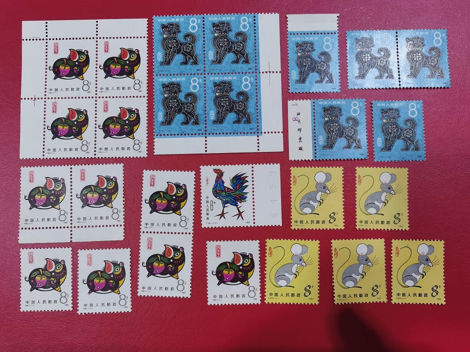 羊有十来张边齿有点微黄,其他原胶全品,85枚,单价1.8元,153元