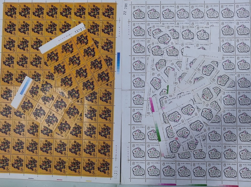 龙一个8联,一个4联微黄,其他原胶全品,113枚,单价4.7元,531元