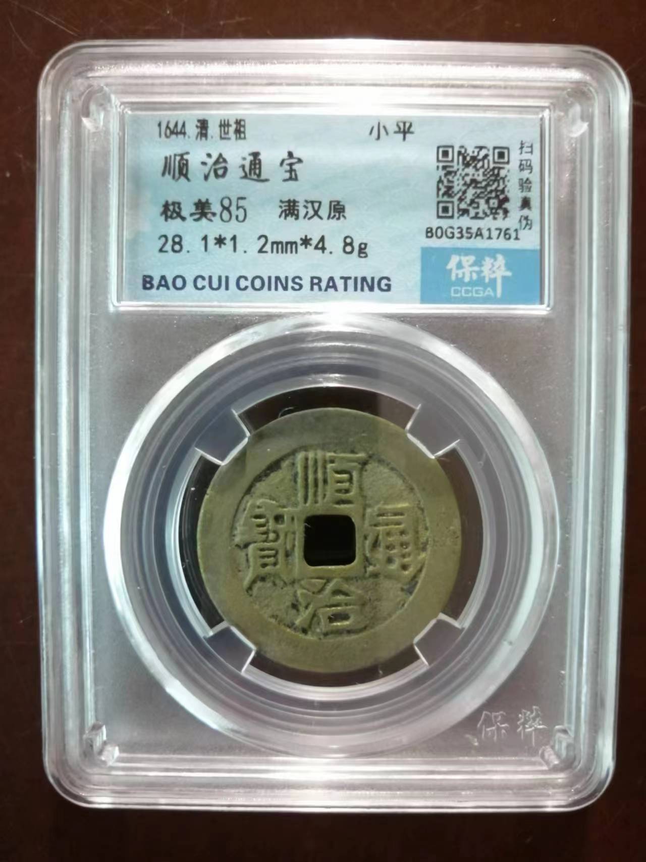 保粹85分顺治满汉原大样1枚