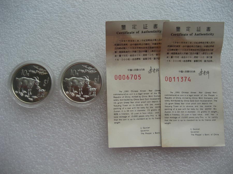 → 1991年15克生肖羊银币(附证书)