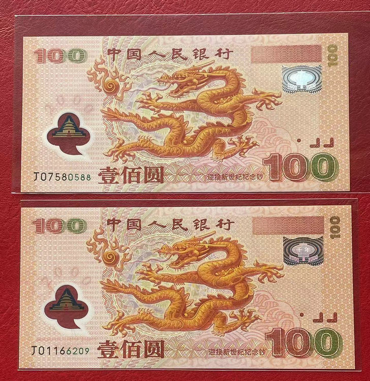 龙钞 J01166209 朦胧号 售1600元 J冠前面有自然漏印。