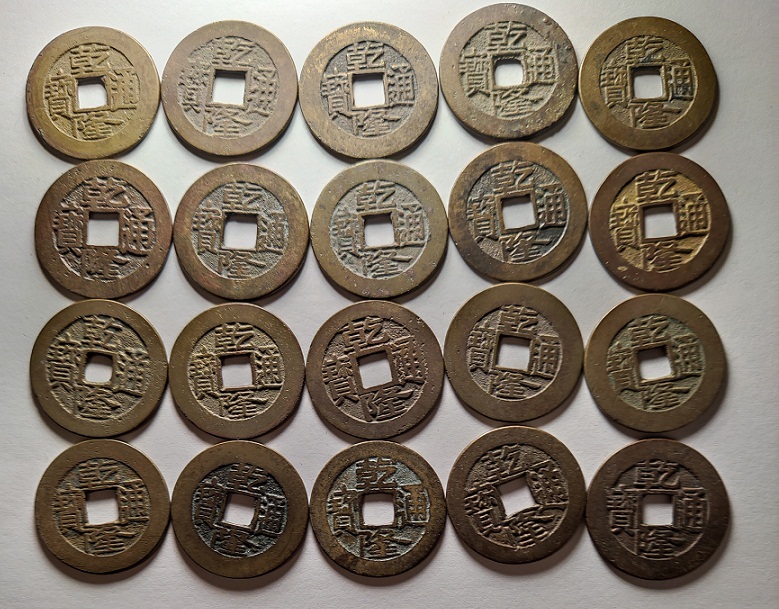 精品25+乾隆40枚,无漏裂补,字口好,钱体规整,一起出22元/枚。