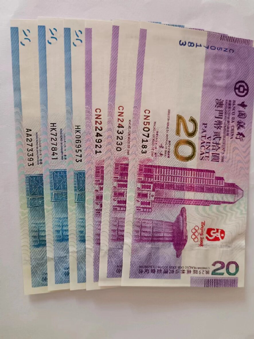 → 香港,澳门,奥运钞,3对,450一对带册