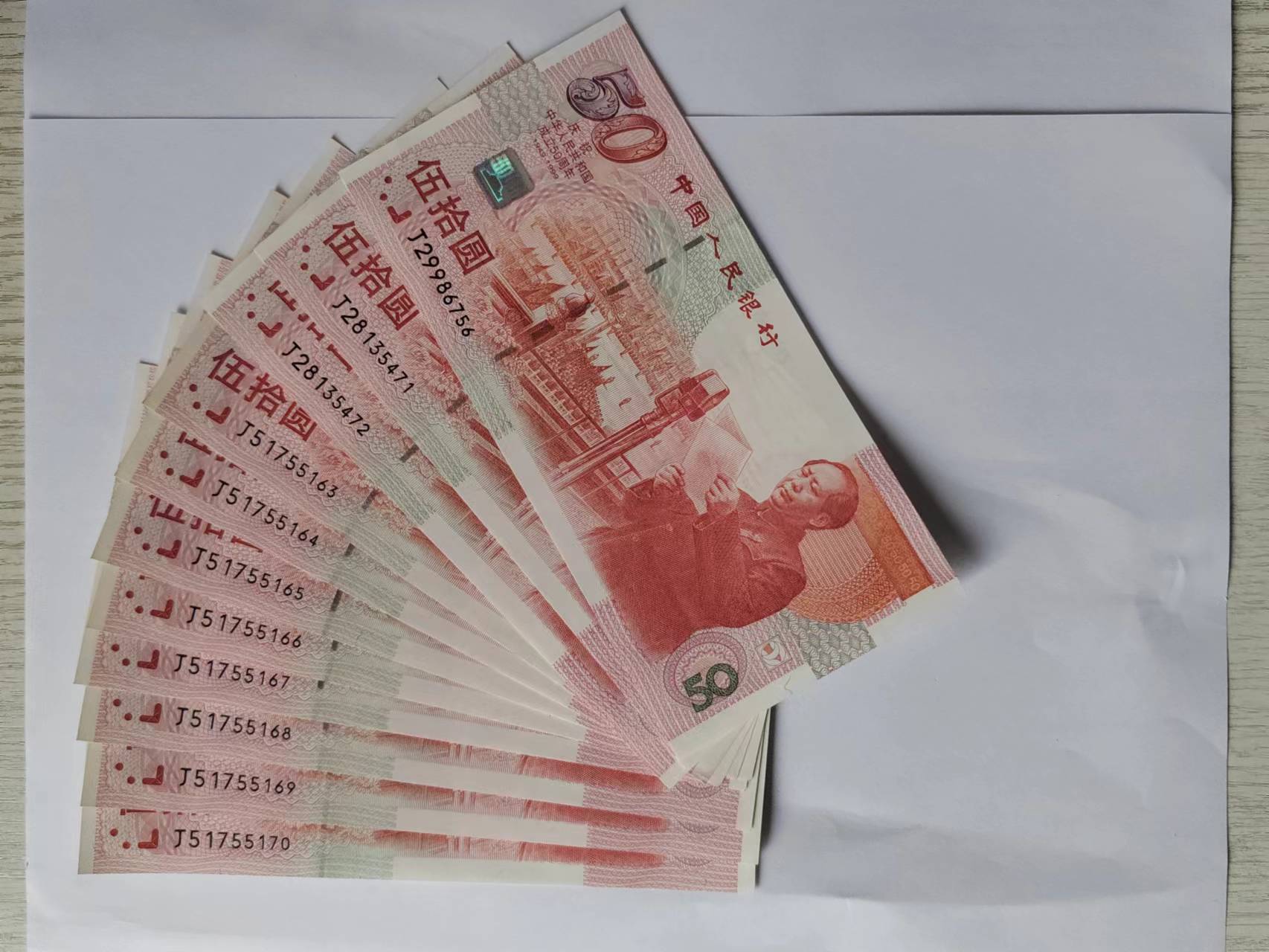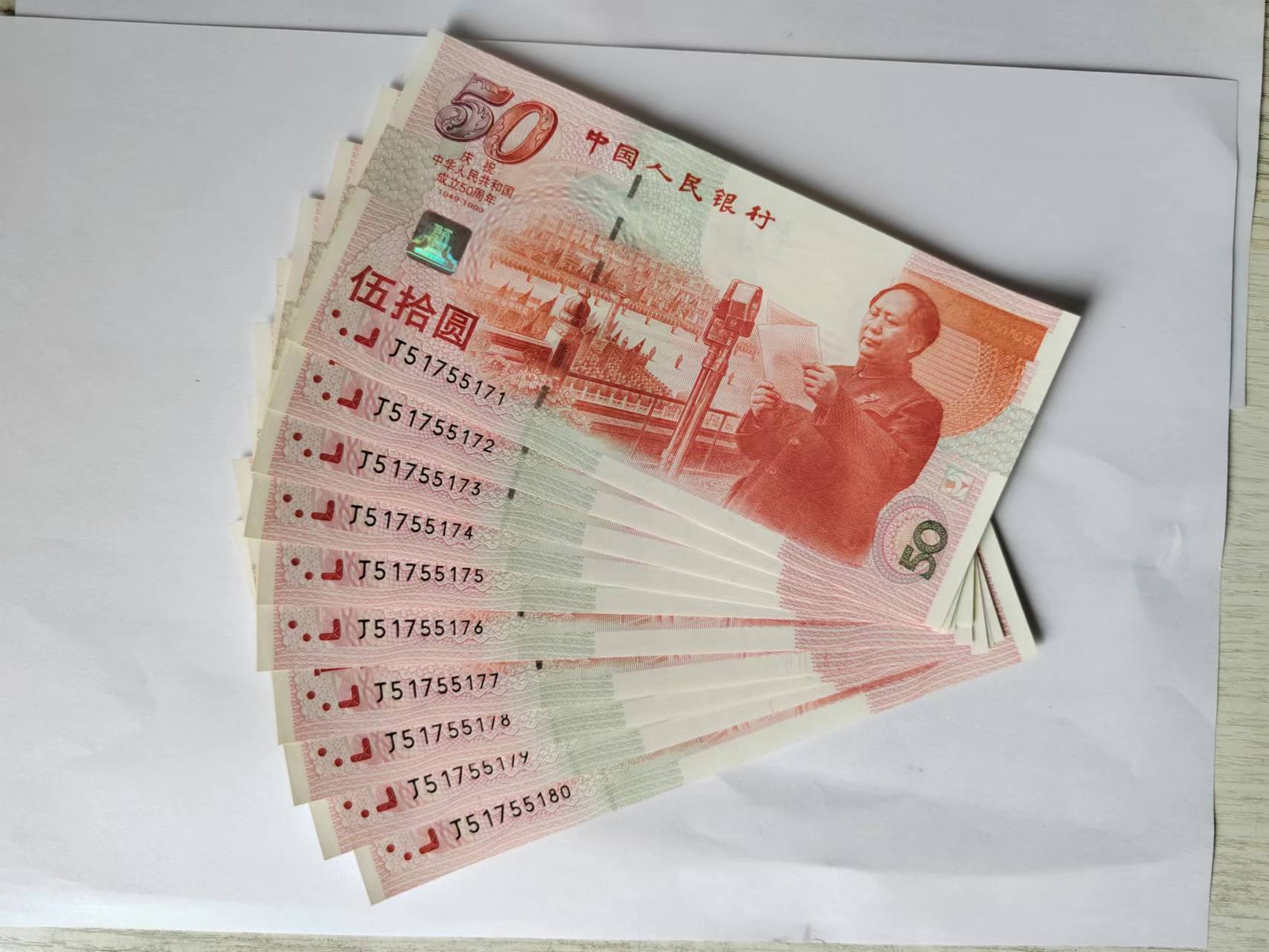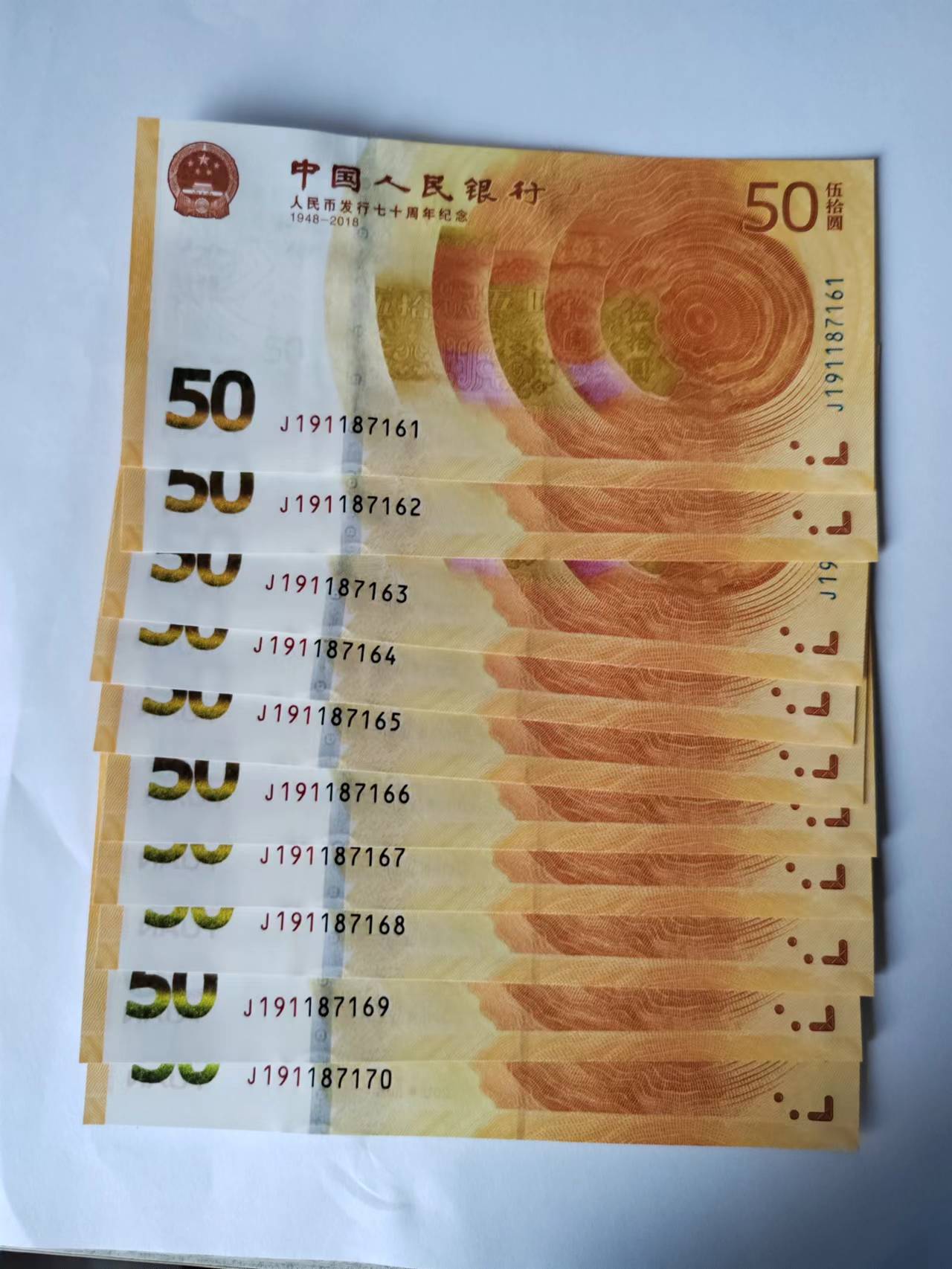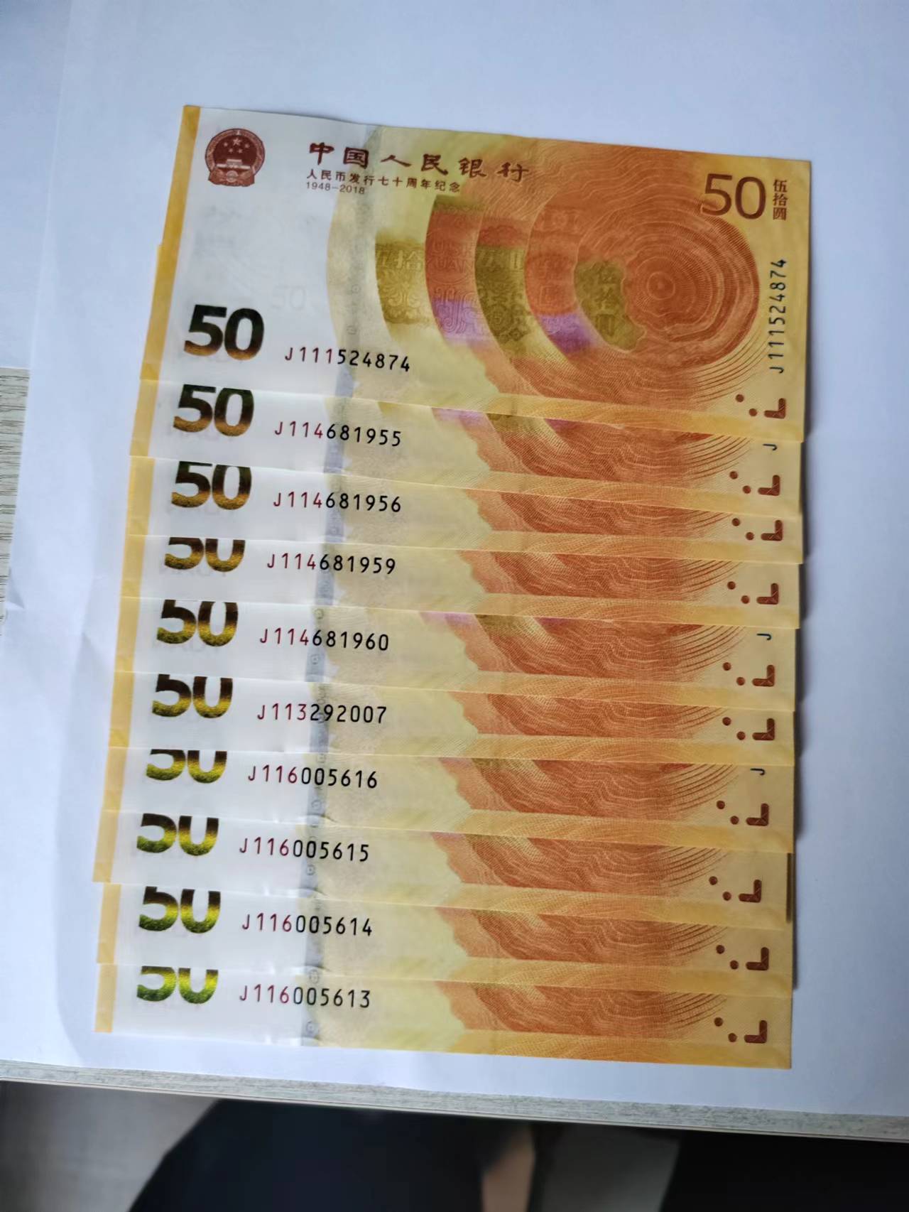 → 售建国钞连号,标十。70钞补号标十,连号。