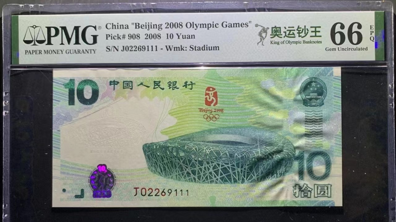 08奥运钞豹子号111无3457 PMG66 5888元