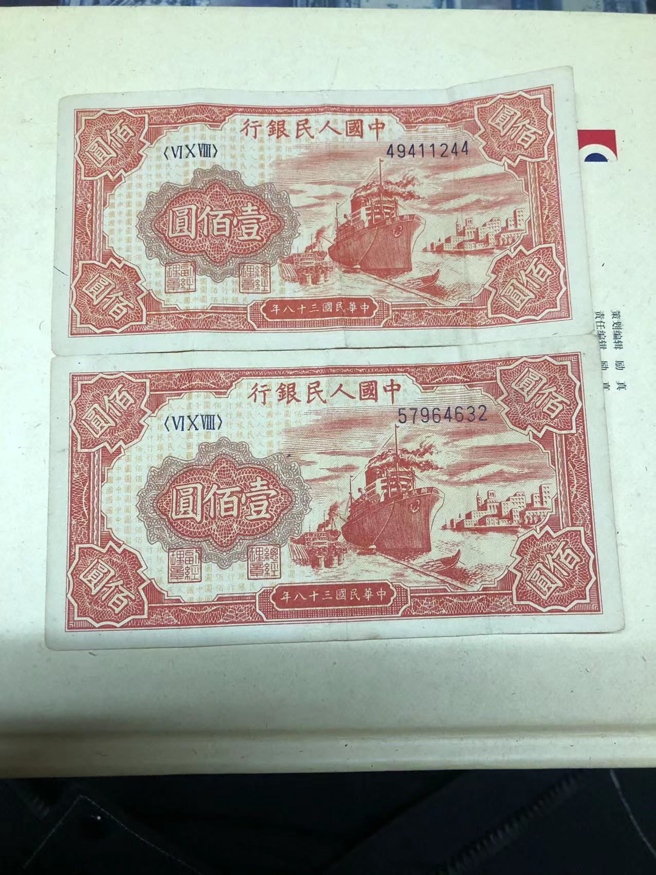 好品红轮船2张,不破皮,品相如图,2000一张,联系电话