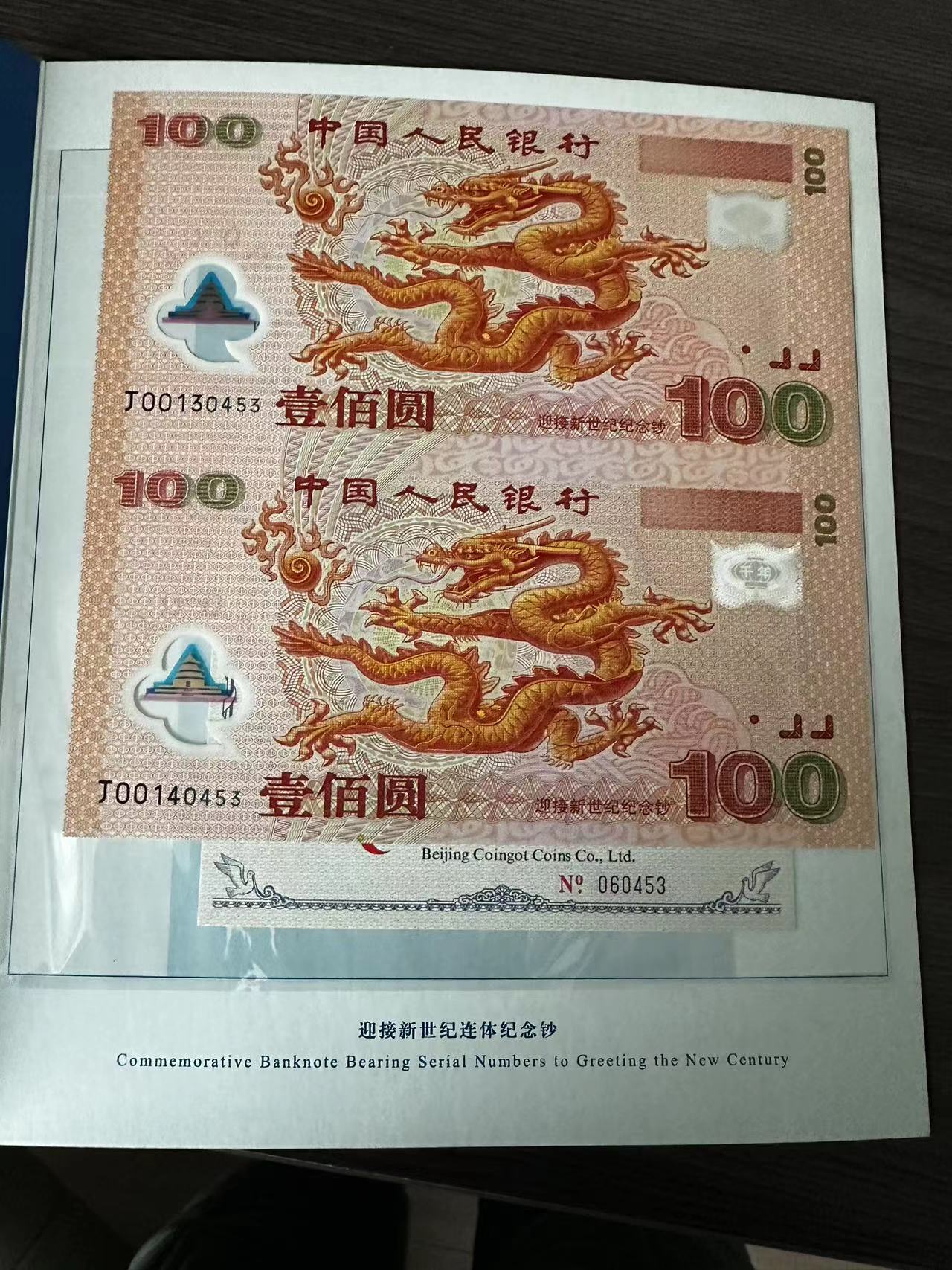出售双龙连体钞一本,价格10280元 款到发货 ,电话联系确认,常不在线 可以加微信手机号13587543888看图
