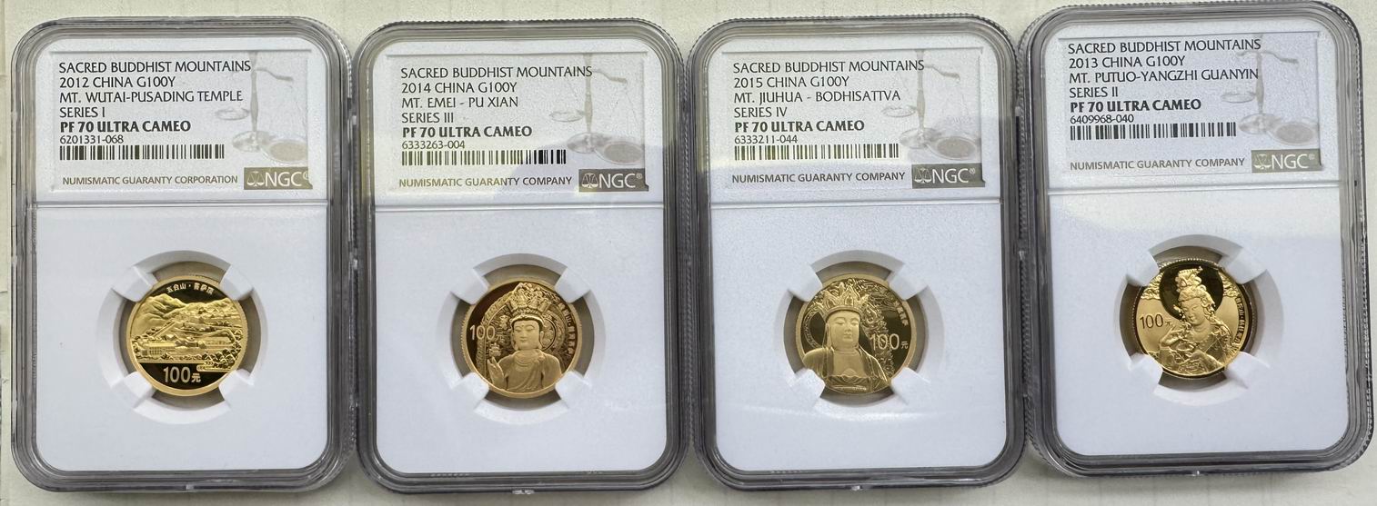→ 出售:NGC 70分 四大名山(五台山、峨眉山、九华山、普陀山)1/4金币各一枚