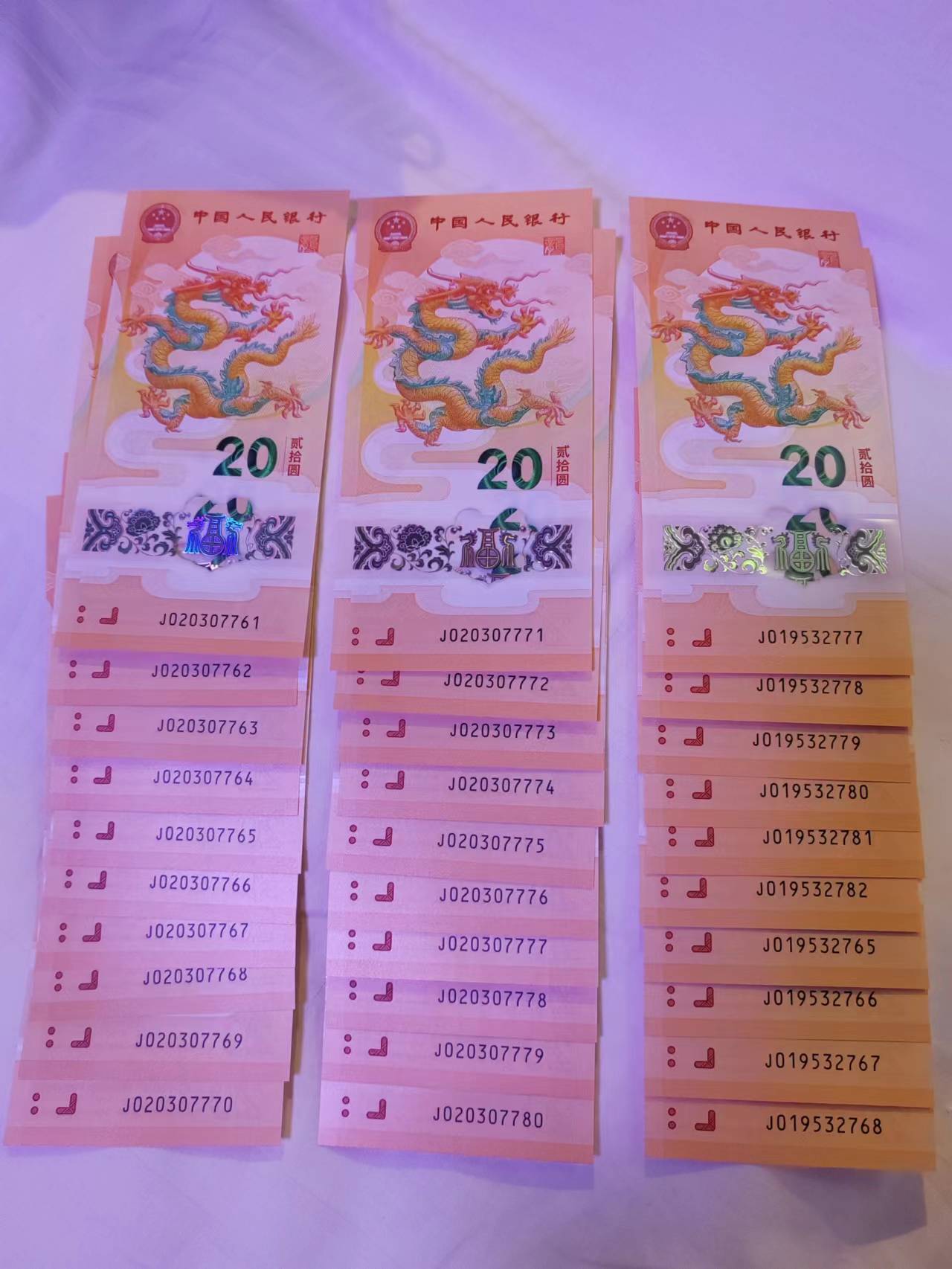 出小龙钞标二十连含7777,散张10张,含777,共30张,通走1800元包邮!