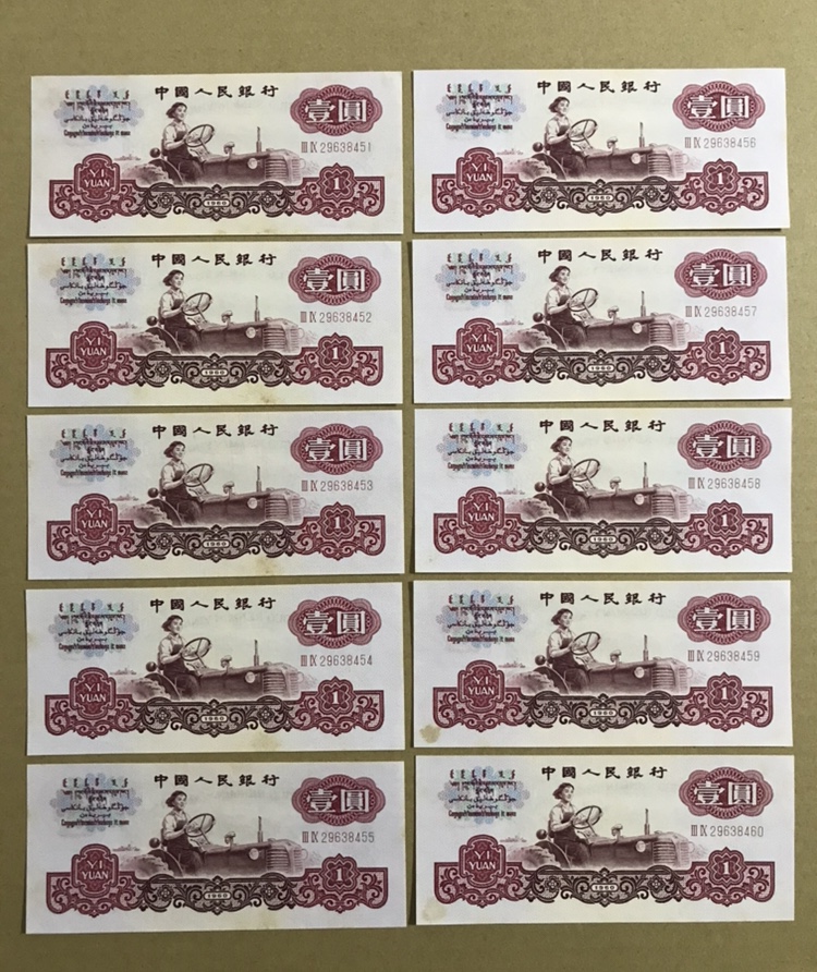 大团结8张全新原票有很轻微的折无黑线960元。