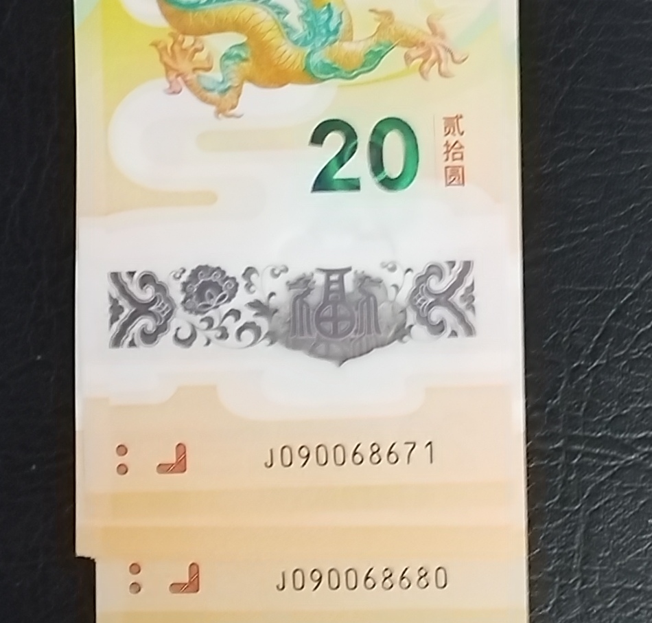 出有张倒置号的十连号小龙钞