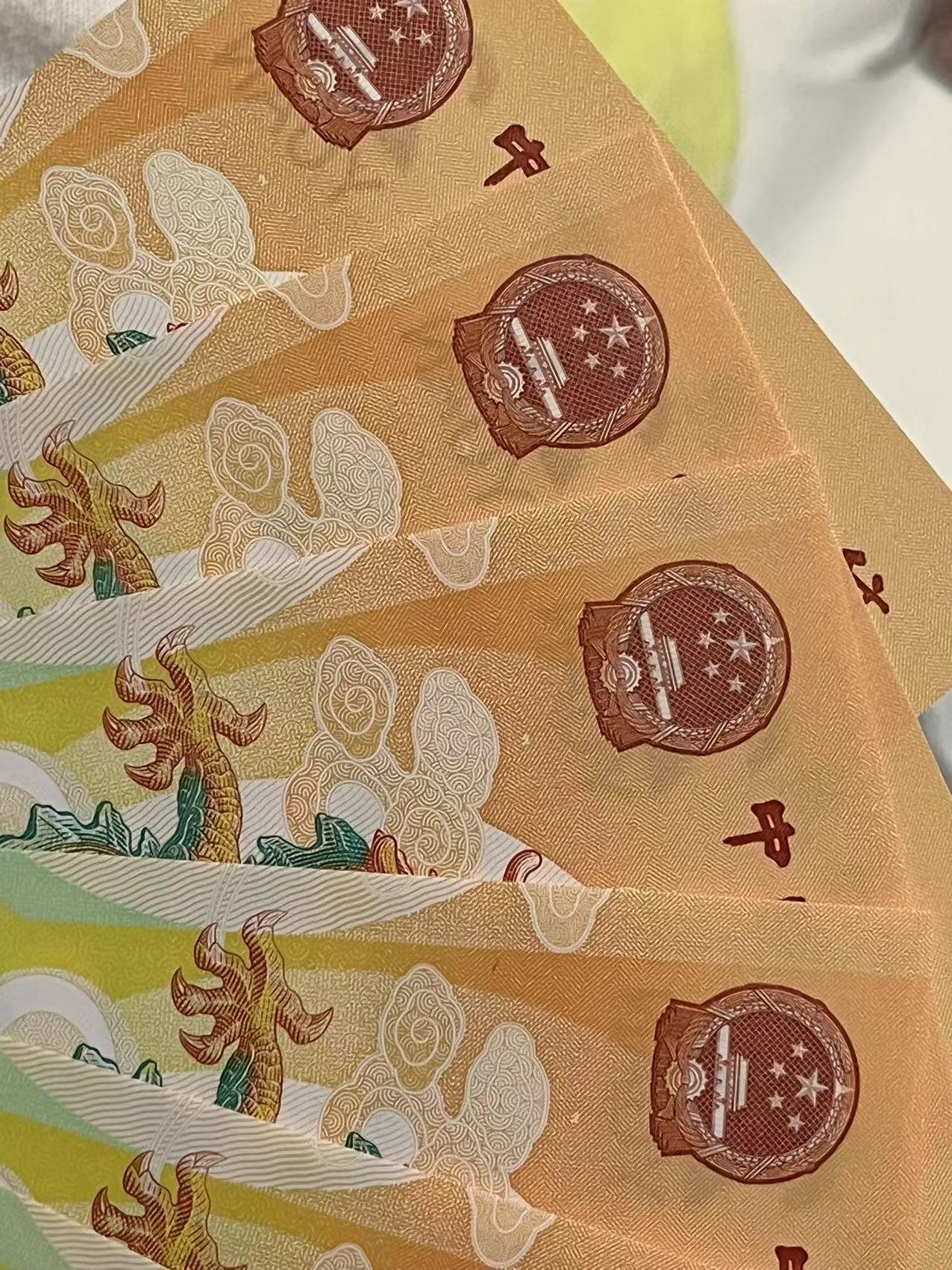 → 出小龙钞国徽下爱心版油墨错误