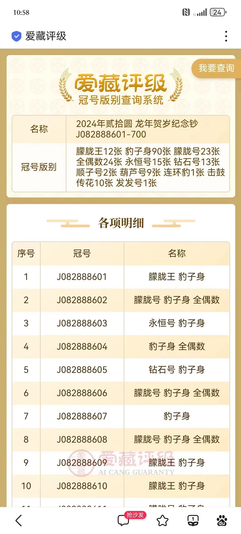 朦胧王:J082888601. 0268组合888豹子身、888666双豹,福禄双全、吉祥如意,50000元(附图);