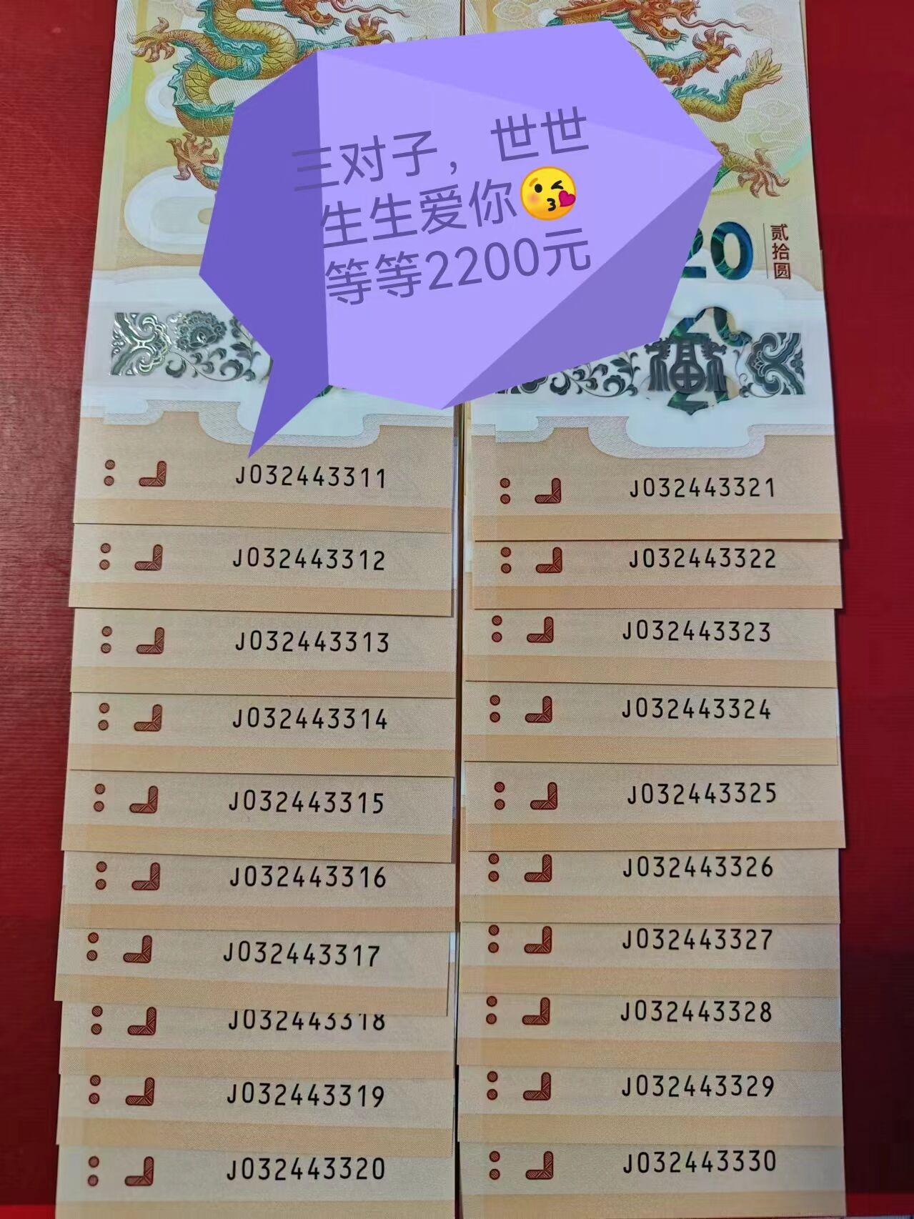 小龙钞爱情号,对子一些