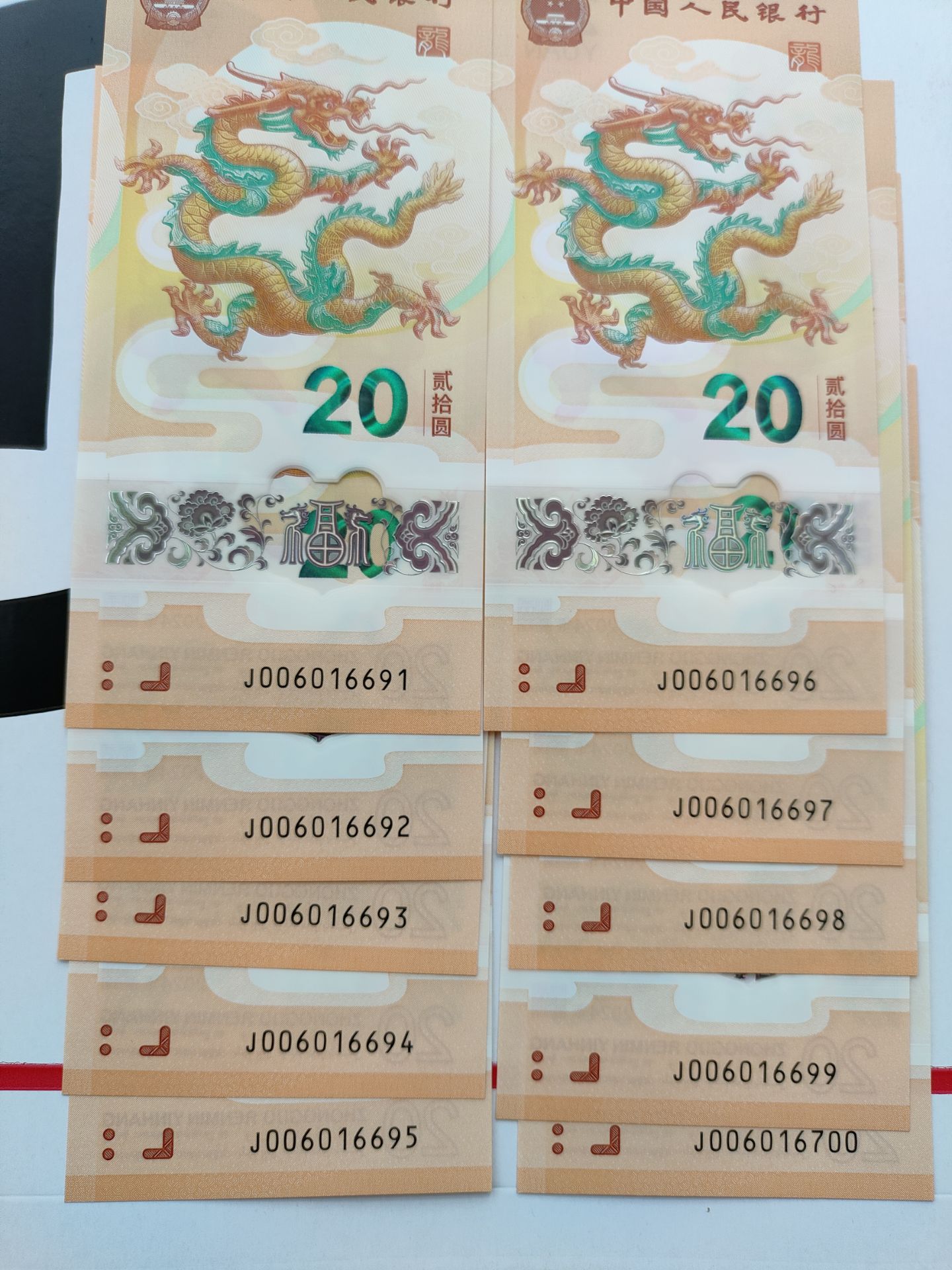 小龙钞0169倒置标十尾91一组,00头倒置91.96.98.99四张还有一张95,
