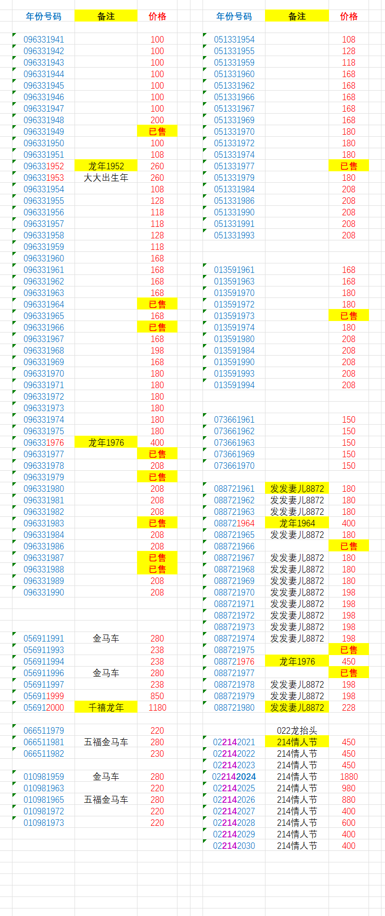 █ █ 龙钞年份号1941~~2030年都有 █ █