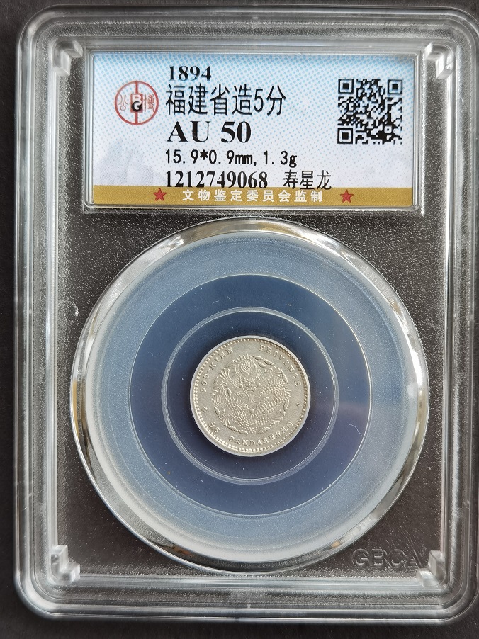 公博评级 华兴拾分AU58分,康熙罗汉82分,光绪一文AU55分,福建寿星龙AU50分,江南壬寅二角XF09
