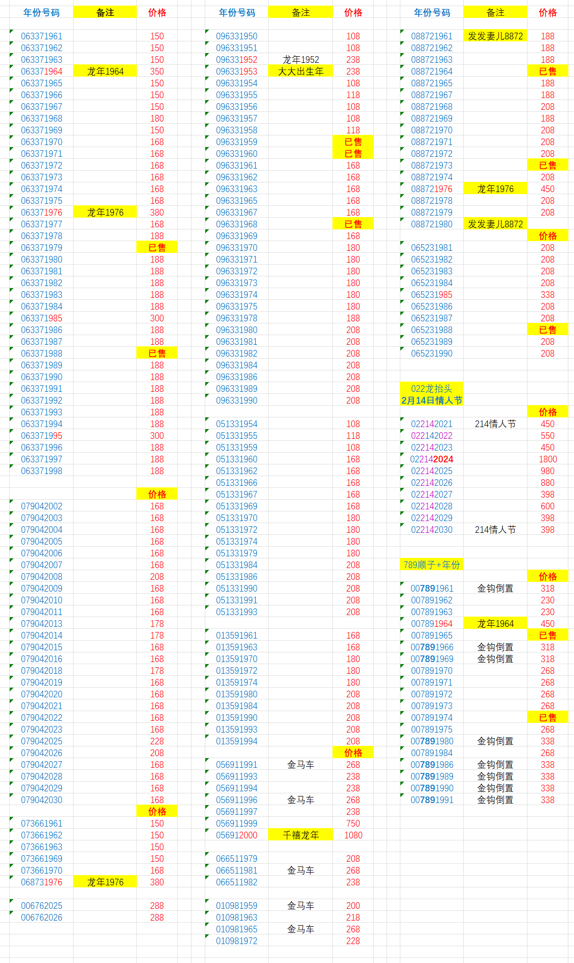 尾 价格在表格 随便选