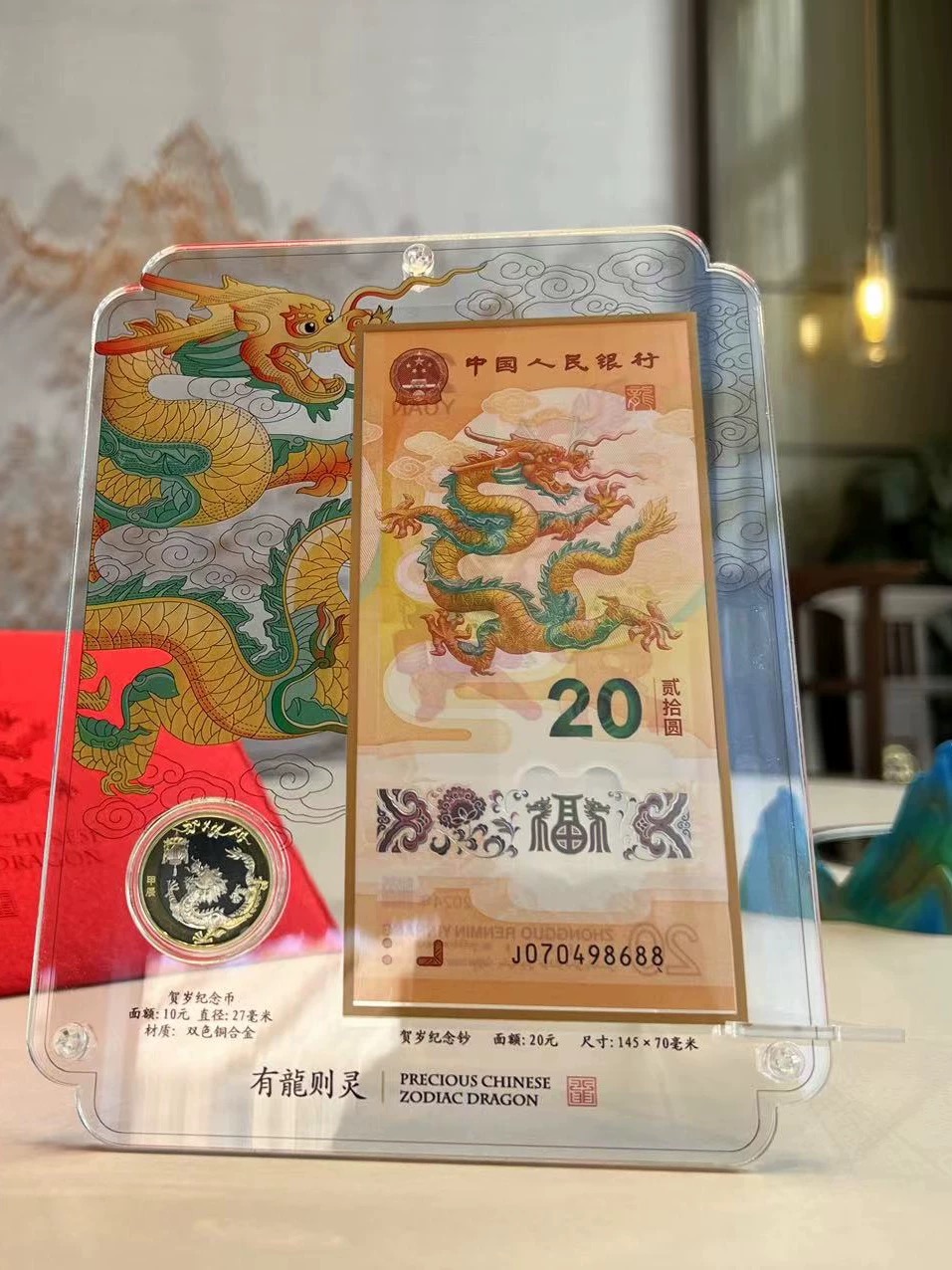 龙钞摆台含一币一钞,亚克力透明高档