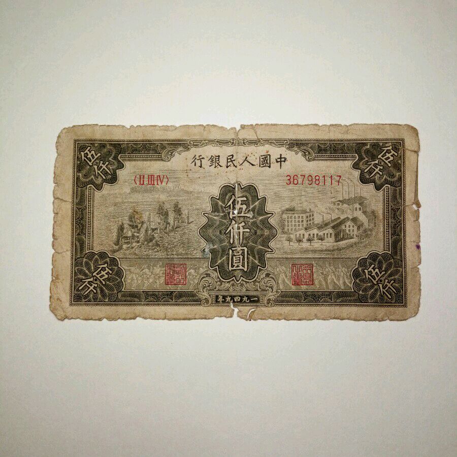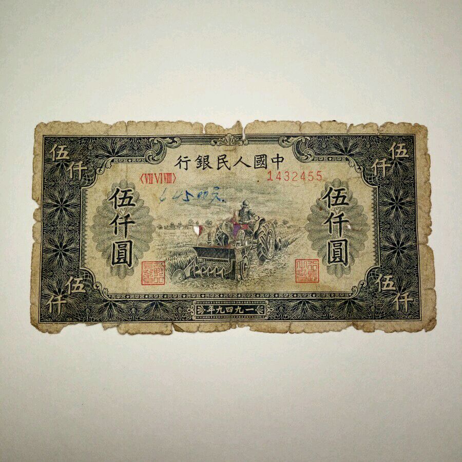 一版伍仟元拖拉机两张