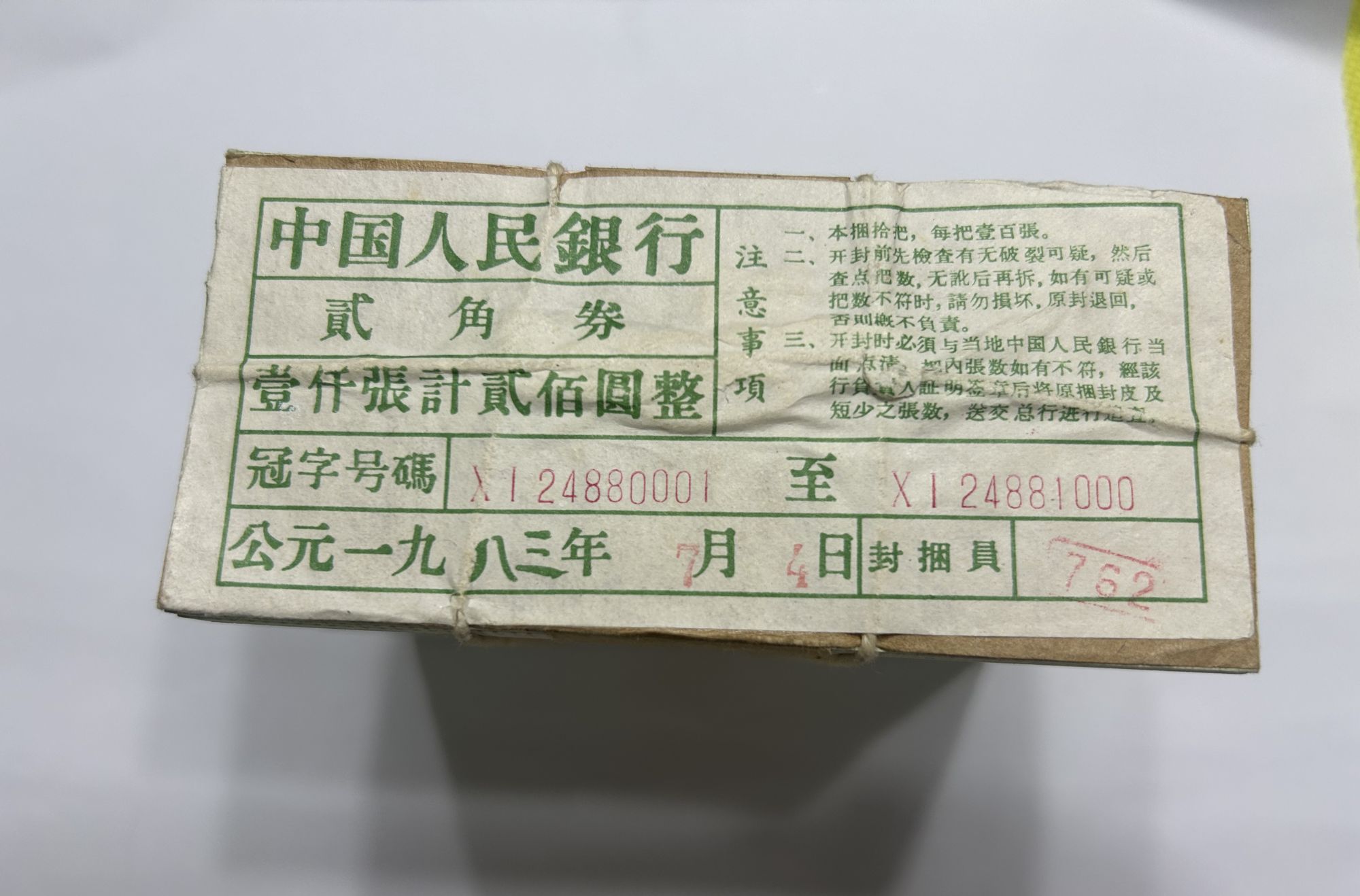 大桥2角一捆,千连号无补,25000元。