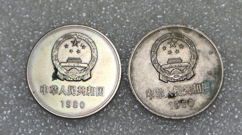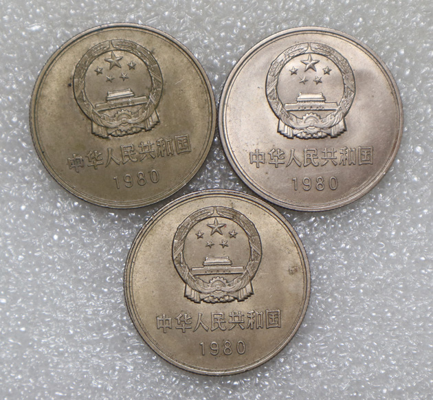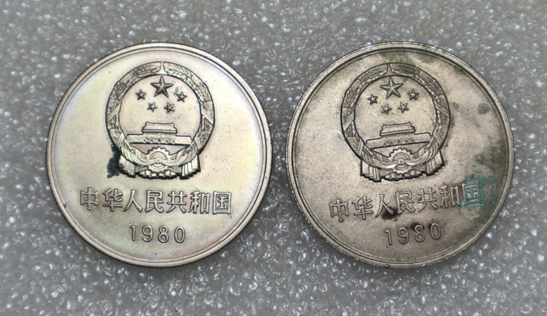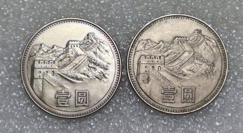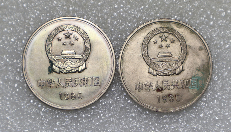 → 底光好品,长城币80年一元,----5个