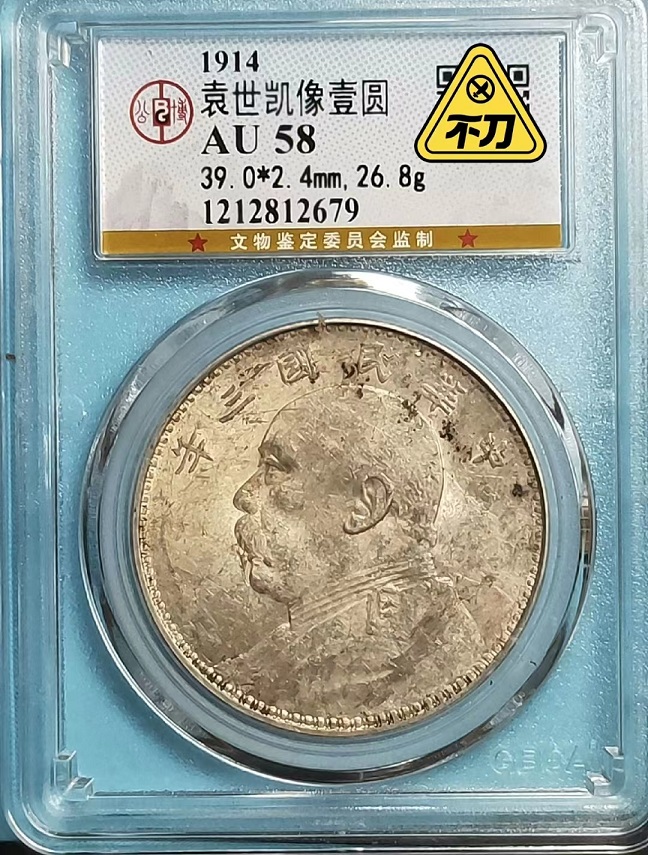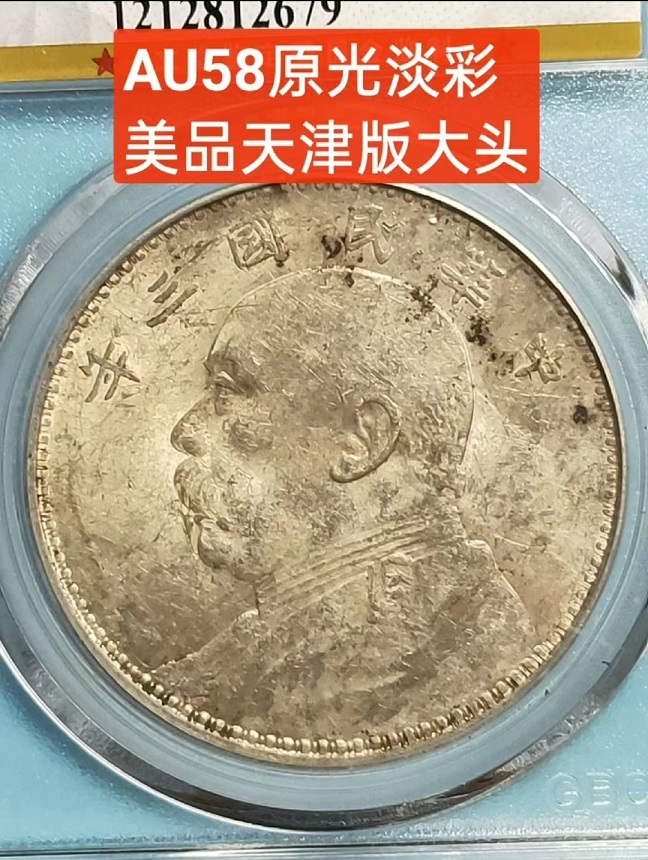 袁大头,公博评级AU58,袁像一圆银币,天津版大头,底光十足,传世精品,老包浆老味道, 底售1360元。