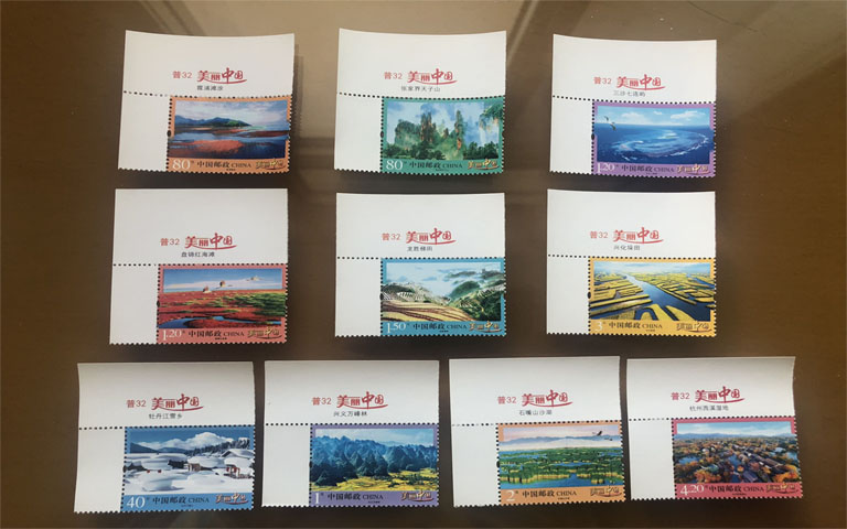 美丽中国(1)右下角四方连,有10套,45元/套。