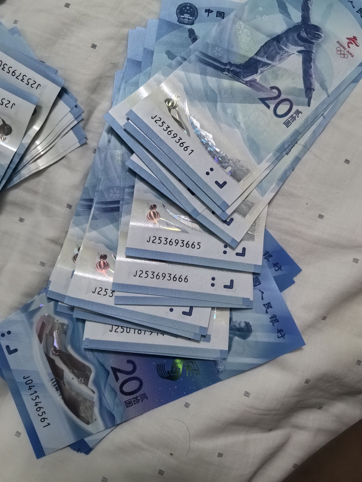 冬奥共80组,含333.88.标十,无47和666标十,航天尾88.尾8和双尾一起28张,两个钞总面值加100元,直接确认有效三包到手