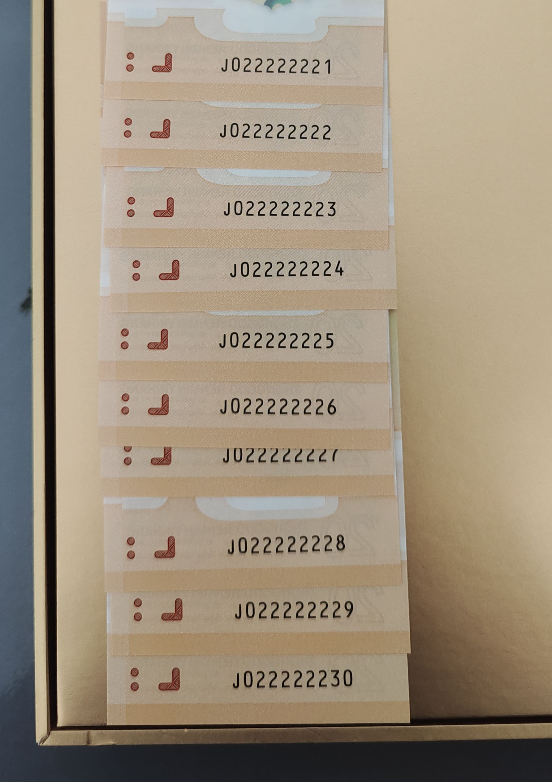 出小龙钞J022222222标十(裸钞包品可代评级)