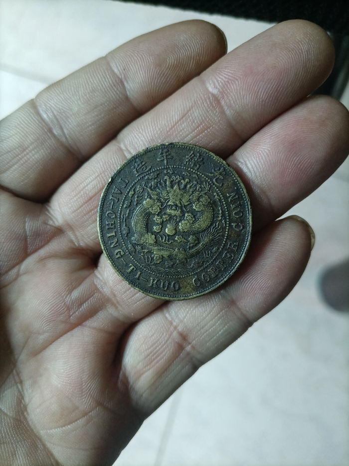云南造黄铜滇二十文,字迹清晰,龙鳞几乎全鳞,黄铜滇比红铜滇二十文要少,价1380元,永远包真包老,有意者电联