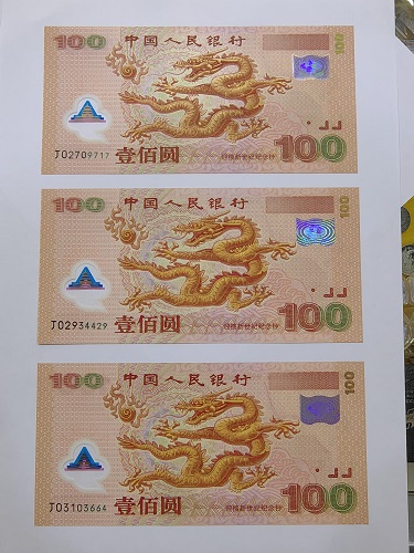 低岀千禧龙钞3张