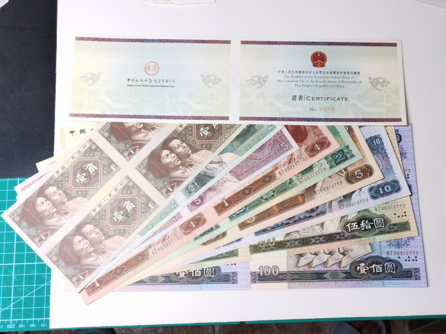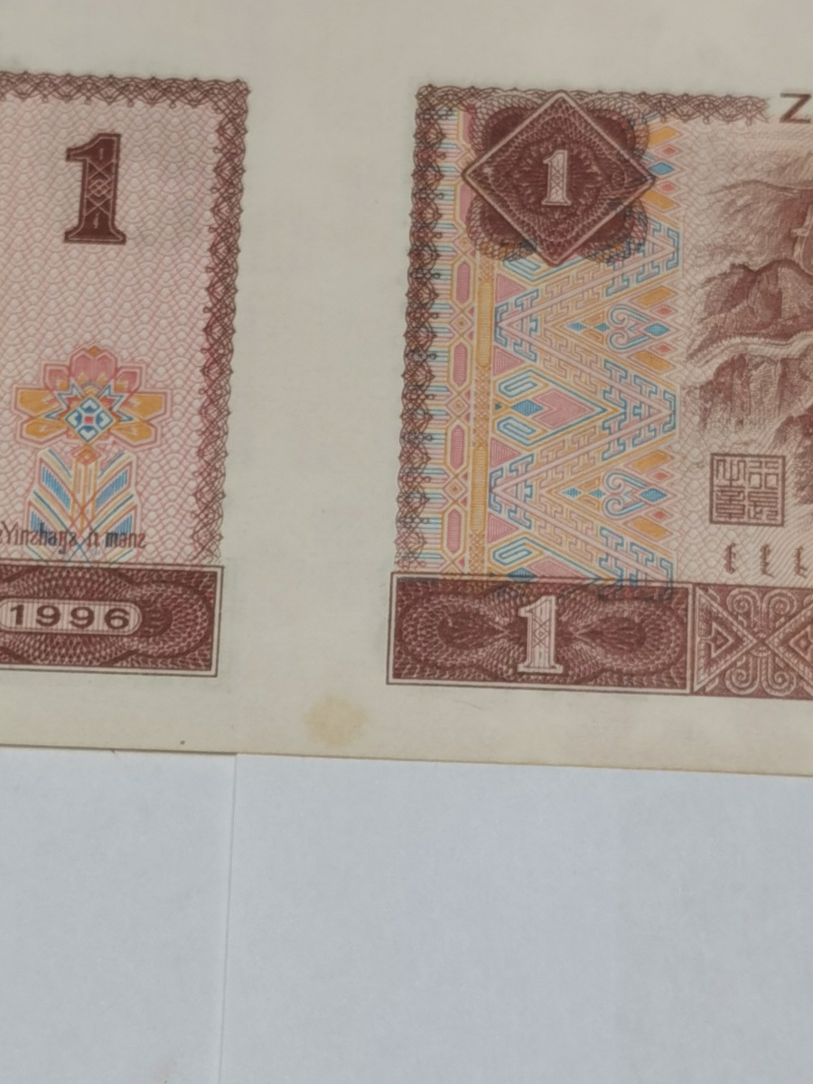 品相:除了1元背面有一颗小黄斑“见图如下”,其余均为全品(肉眼无斑,无脏,紫光灯下无潮斑)