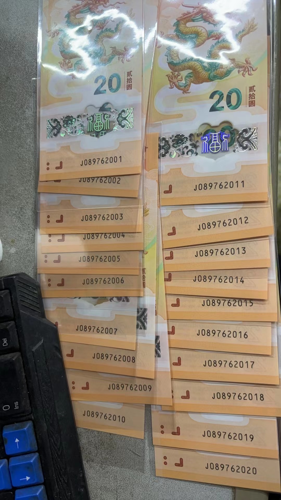 生肖年年份龙钞 2001-2020 20连 150一张 一起
