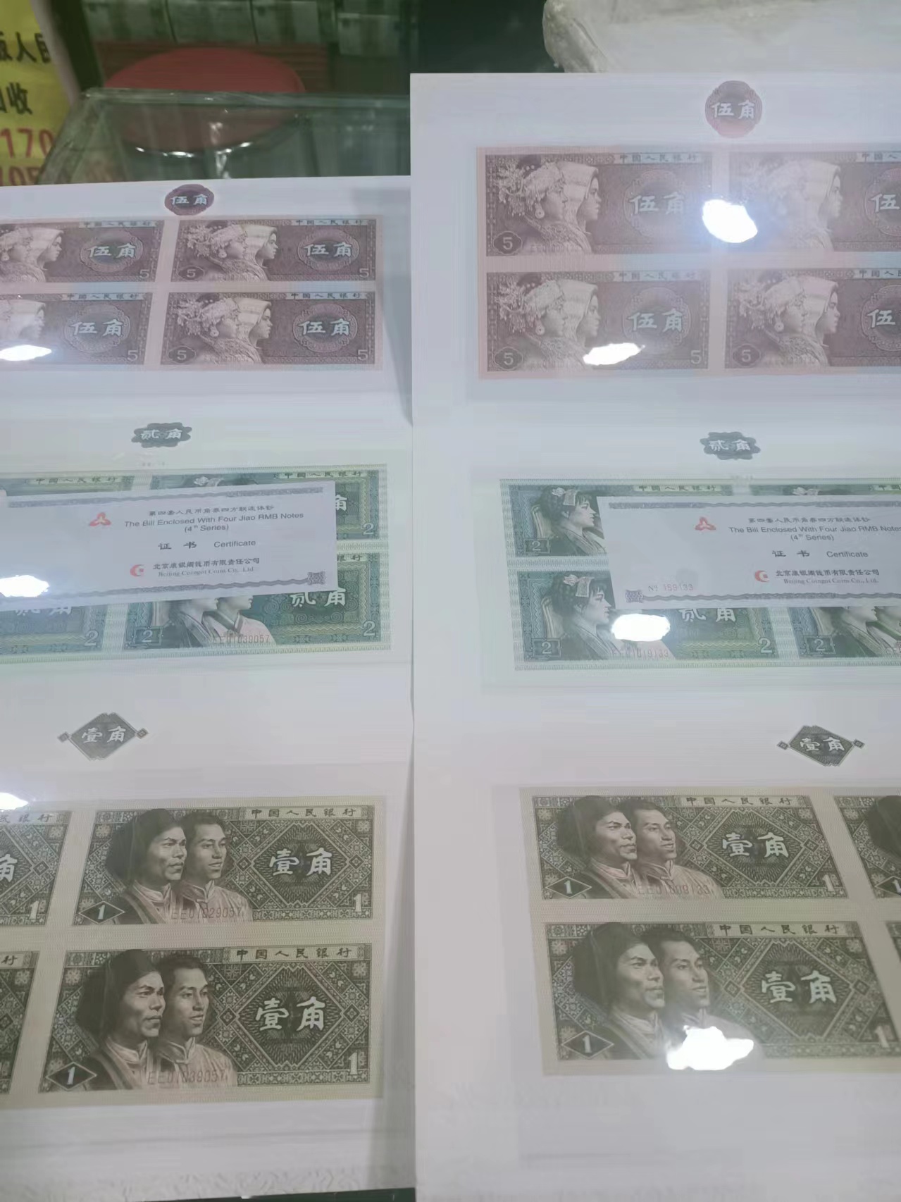 低出125角币四连体两本证钞对号