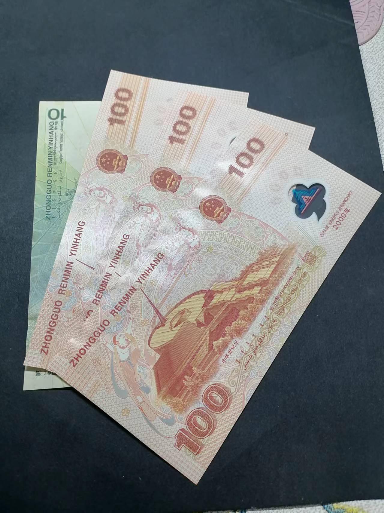 → 奥运钞1张和大龙钞3张